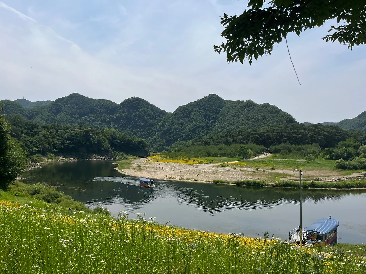 다슬기 음식으로 배를 채우고 다음으로 향한 곳은 청령포. 청령포는 어린 폐왕이었던 단종의 유배지로 영월 10경이자 대한민국 명승 제50호. 뒤쪽은 수직 절벽인 육육 봉이, 그리고 북서쪽은 서강으로 막혀있어 배가 없으면 밖으로 나갈 수 있는 섬 지형인 청령포. 배가 없으면 탈출이 불가능한 곳으로 왜 유배지로 사용되었는지 알 것 같았던 곳이다. 지금도 청령포는 배를 타고 들어가게 되어있는데, 배를 타면 5분도 안 걸리는 강물 하나를 사이에 두고 유배지에 갇혀 만나지 못하는 부인을 그리워했을 17살의 어린 왕 단종의 심경이 어땠을지. 배를 타러 내려가는 길에 피어있는 금계국의 풍경이 너무 아름다워 더욱 서글퍼 보였던 청령포.