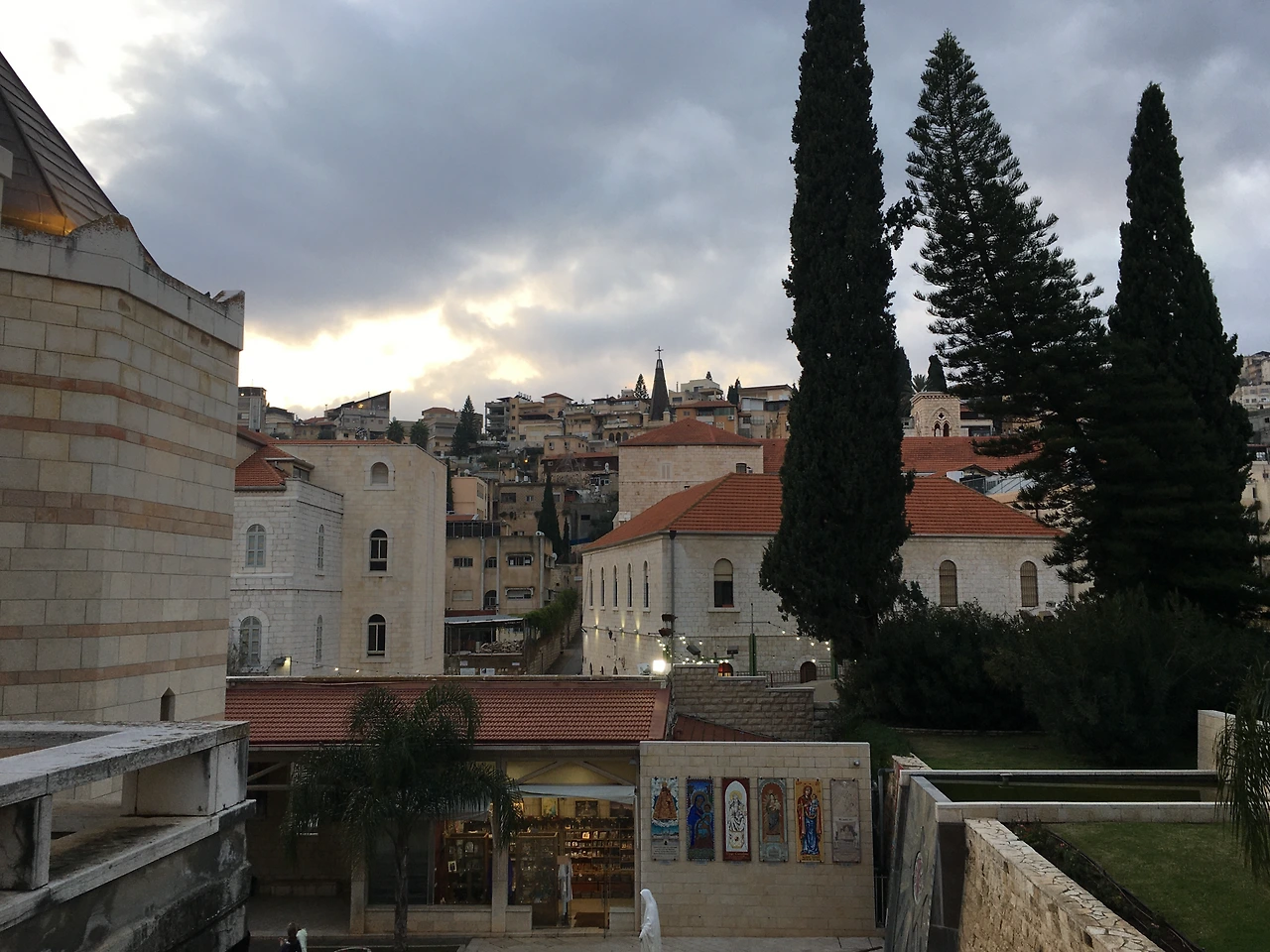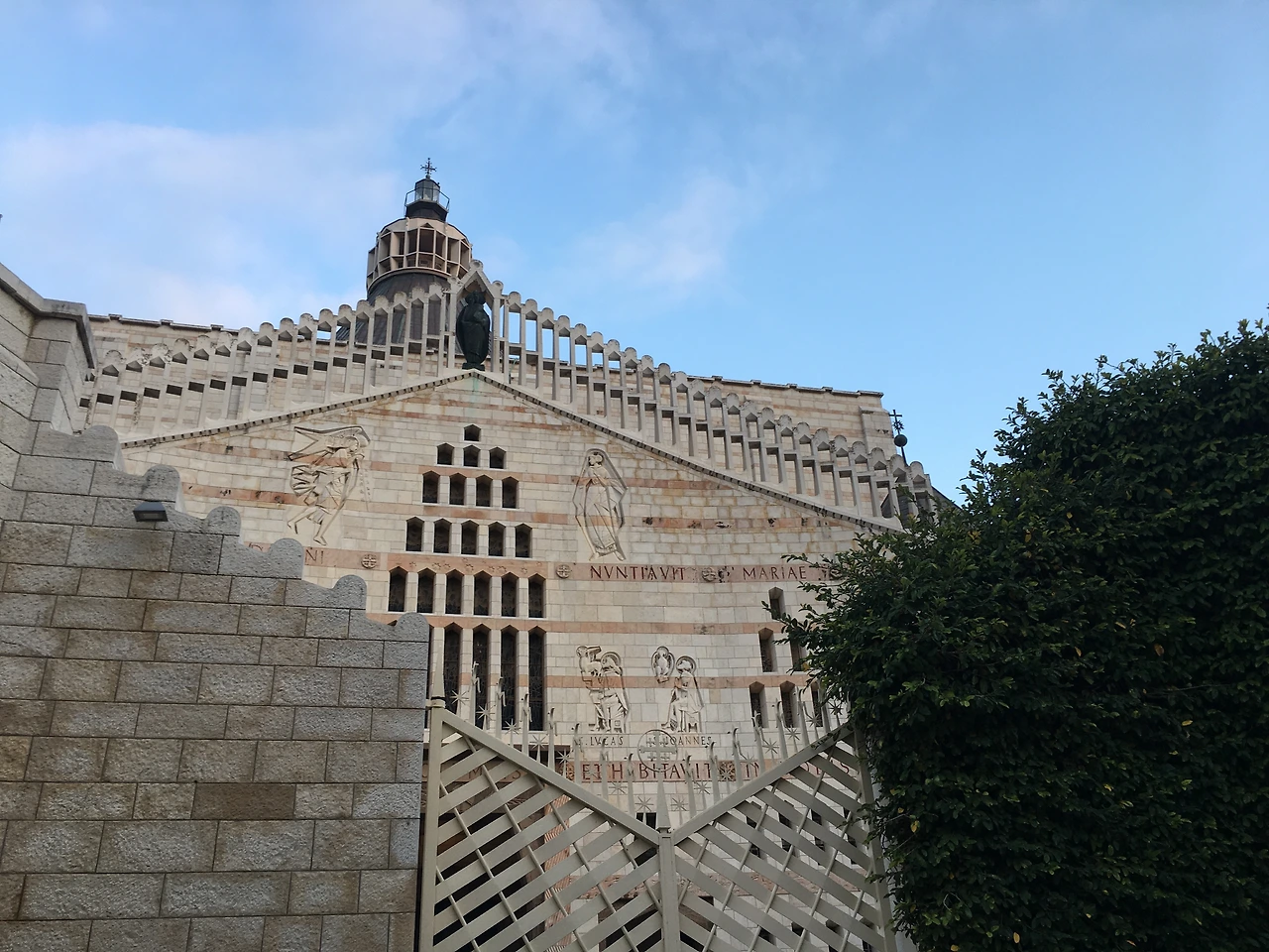 나사렛에 도착한 우리가 방문했던 곳은 가장 유명한 곳인 나사렛 수태고지 교회 (Church of Annunciation). 역시나 나사렛에서 가장 유명한 장소답게 방문객들이 많았던 곳이다. 수태고지 교회는 중동 지역에서 가장 큰 기독교 성당 중 한 곳으로 마리아가 예수님을 낳을 것이라는 음성을 들은 마리아의 집 터 위에 세워졌다고 한다. 5세기경 비잔틴 제국 시절 세워졌다는 수태고지 교회는 이후 3번 정도 파괴와 재건 과정을 거쳤고, 1969년 이탈리아의 건축가의 설계로 지어진 현재의 모습이 유지하고 있다고 한다. 또한 교회가 여러 차례 파괴되었음에도 불구하고 수태고지 교회의 하이라이트인 지하 동굴은 보존되었다고 하니 신기.
