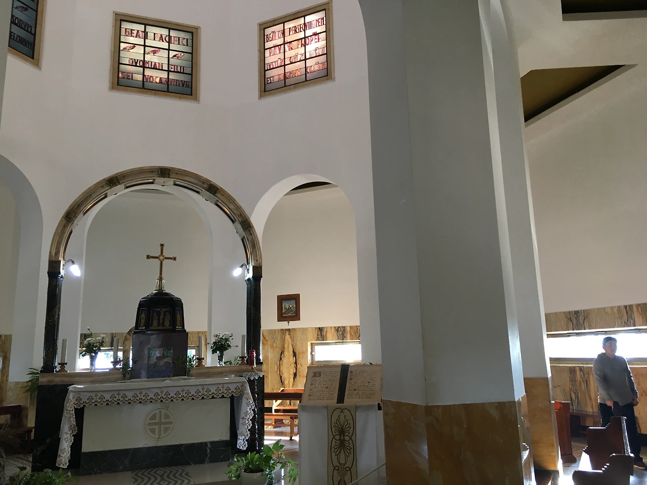 팔복기념교회 예배당으로 향하는 '말씀의 길' 바닥에는 여덟 가지의 복이 새겨져 있는 대리석들이 전시되어 있어 한 말씀씩 천천히 묵상하며 예배당으로 향했다. 팔복기념교회 예배당의 천장 상단의 창문은 총 8개로 이루어져 있었는데, 각 창문마다 라틴어로 여덟 가지 복의 말씀들이 써져 있었다. 스테인드글라스를 통해 들어오는 은은한 빛 덕분에 성경 속 글자로만 접했었던 여덟 가지의 복이 가깝게 느껴지는 것 같았다.