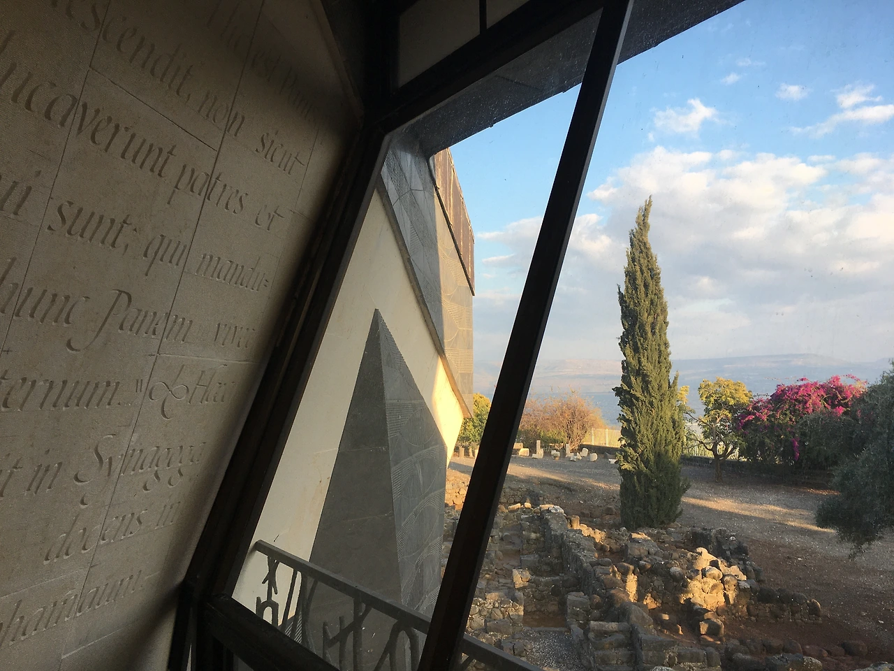 마지막으로 가버나움에서 향한 장소는 베드로 기념 교회(St. Peter's Memorial Church). 이곳은 베드로의 집이 있던 자리로, 여기서 예수님께서 베드로 장모의 병을 고치신 곳이라고 한다. 그 위에 세어진 베드로 기념 교회는 1990년에 지어졌는데, 베드로 집터의 유적을 보호하기 위해 지면에서 띄워진 배 모양의 구조로 설계되었다고 한다. 교회 안으로 들어가니 교회 바닥 중앙이 유리로 되어있어 보존되어 있는 베드로의 집터와 5세기 팔각형 교회 터까지 볼 수 있었다. 그렇게 베드로 기념 교회를 마지막으로 밖으로 나와 갈릴리 호수의 석양까지 알차게 눈에 담으며 가버나움을 마지막으로 즐거웠던 이스라엘 4일 차 탐방을 마무리했다.