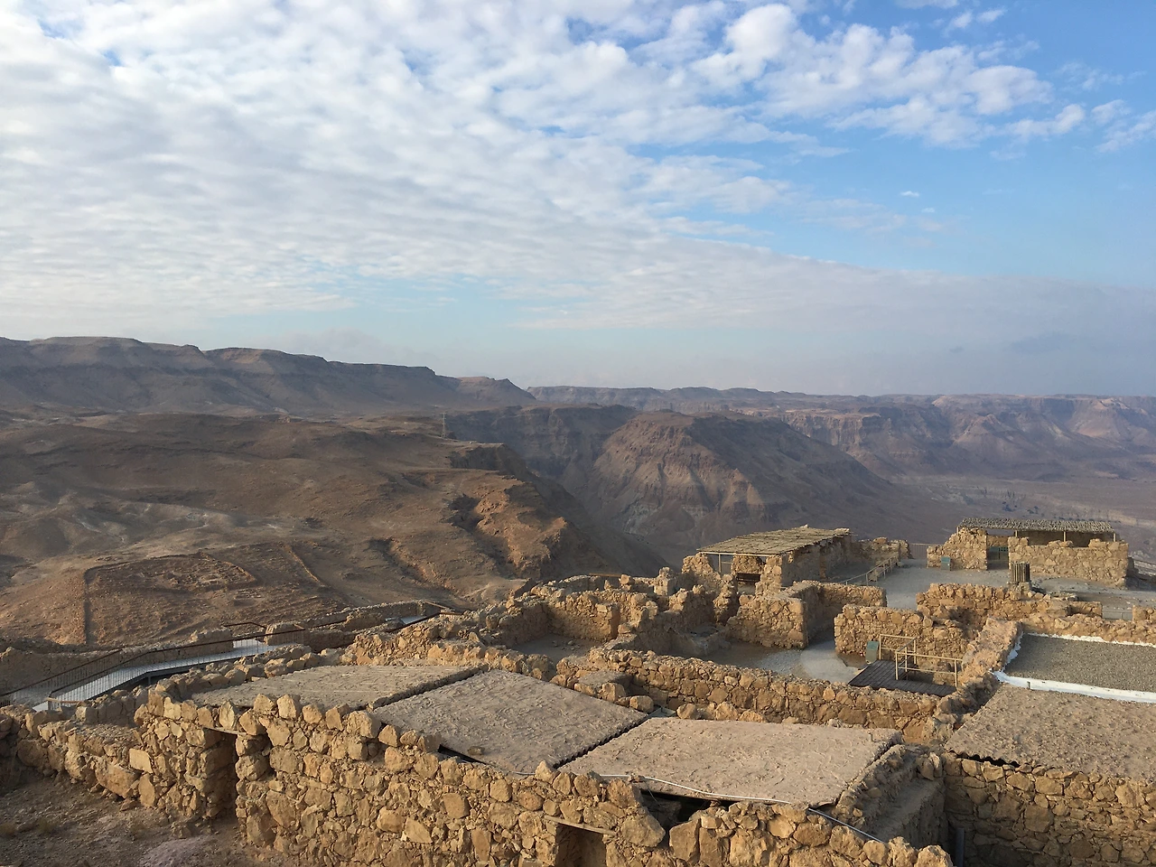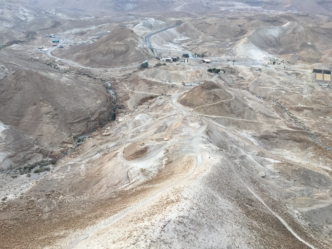 흥미로웠던 쿰란 국립공원 탐방을 마무리한 후 우리가 향한 곳은 마사다 국립공원(Masada National Park). 이스라엘의 중요한 역사가 담겨있는 마사다 요새는 2001년 유네스코 세계문화유산으로 지정된 곳이라고 한다. 쿰란 국립공원 탐방 마무리 후 빠르게 달려간 덕분인지 우리는 마지막 케이블카 마감 전에 도착하여 다행히 표를 구매할 수 있었다. 늦은 점심을 30분 안에 해결한 후 케이블카를 타고 마사다 유적으로 향하는 길, 케이블카 위에서 '뱀의 길'을 바라보자니 만약 케이블카를 타지 못했다면 도보로 1시간을 넘게 걸어 올라왔어야만 했을 뻔한 사실에 순간 눈앞이 아찔(?).