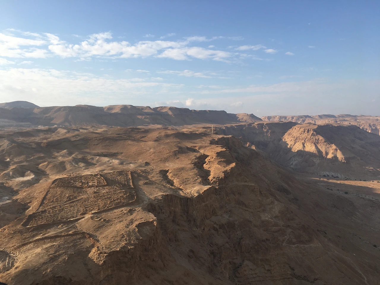 마사다 요새에서 다른 쪽으로 눈을 돌리면 보이는 로마군 진영의 유적. 저렇게 사각형 모양으로 된 로마군의 진영은 진영과 진영을 연결하여 요새를 360도로 둘러싸며 유대 저항군이 도망치지 못하도록 엄청난 압박을 주었다고 한다. 마사다 요새 안에서 로마군들이 자신들을 잡기 위해 포위하고, 경사로를 쌓고, 공성탑을 쌓는 모든 과정을 지켜봐야 했던 유대 저항군의 심정이 어땠을까. 그렇게 이스라엘의 숭고한 역사를 기억하며 마사다 유적 탐방을 마무리했다.