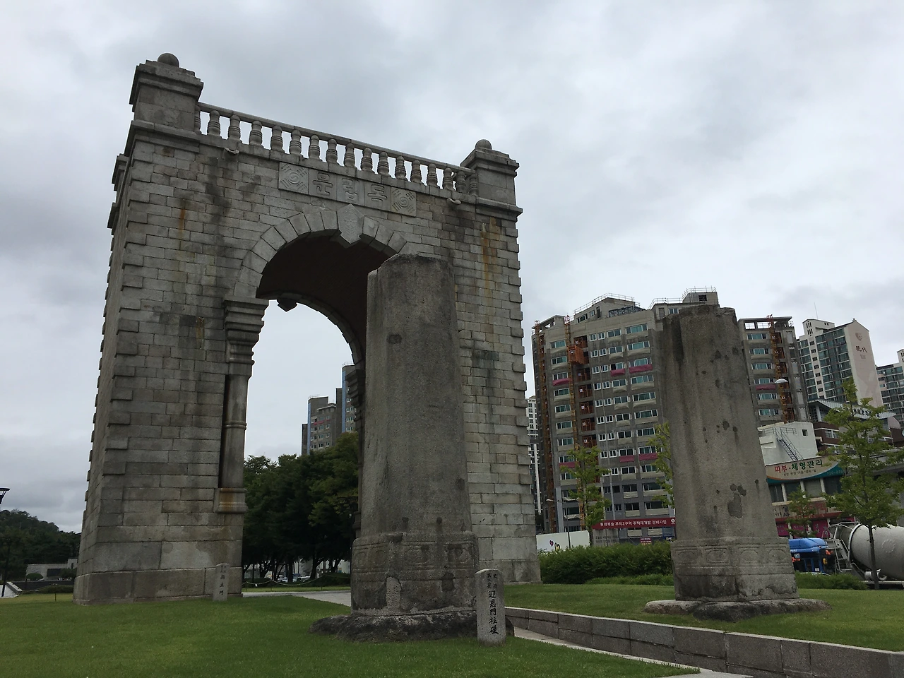 독립운동의 목소리를 따라서 찾아간 첫 번째 장소는 서울특별시 서대문구에 위치한 역사 테마 공원인 서대문독립공원. 보통 이곳에 오면 서대문형무소역사관과 국립대한민국임시정부기념관 등을 방문하고 지하철을 타러 가면서 독립문까지만 눈에 담았었는데, 이번에는 서대문독립공원 안쪽으로 들어가 조금 더 자세히 구경해 보기로 했다. 그렇게 도착한 서대문독립공원에서 가장 먼저 보러 간 곳은 바로 독립문. 대한민국 사적 제32호인 독립문은 1897년에 완공된 건축물로 외세의 간섭에서 벗어나 대한제국의 자주독립 의지를 천명하기 위해 설립되었다고 한다. 독립문 앞의 두 개의 돌기둥은 영은문의 초석으로 1895년 청나라에 대한 관계를 단절하며 영은문을 철거한 후 세워진 게 바로 독립문이다.