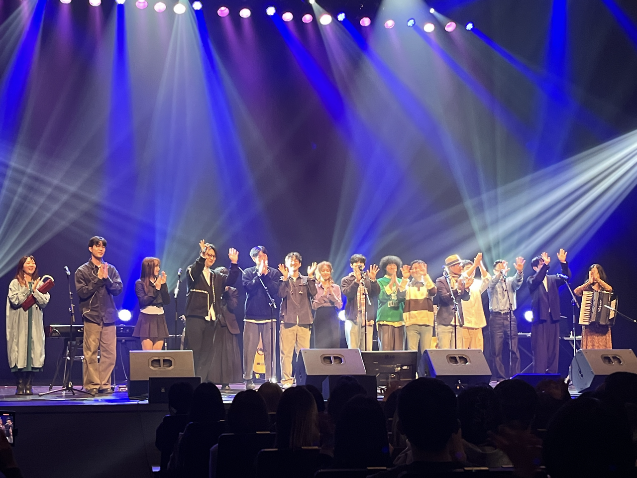 즐거웠던 C팀의 무대까지 끝나고, 단체곡을 위해 모든 유재하 동문들이 함께 나와 ‘내 마음에 비친 내 모습‘을 들려주었다. 임주연, 이찬희, 몽글, 투어리스트, 박은지, 노아윤, 조영남, 임한이, 홍이삭, 주태중,폴란딜드, 정지찬, 배영경, 신기남, 김영우, 그리고 박혜리까지 총 16명의 뮤지션이 ’유재하 음악경연대회‘를 통해 동문이 되고, 함께 모여서 행복하게 노래 부르는 모습이 참 아름다웠다. 아름다운 가사들과 멜로디로 채워진 풍경에 한 부분이 될 수 있어 덕분에 행복하고 즐거웠던 시간이었다. 다음 전야제 공연에도 함께할 수 있길 바라며, 35회 유재하 음악경연대회 전야제 후기는 여기서 끝!