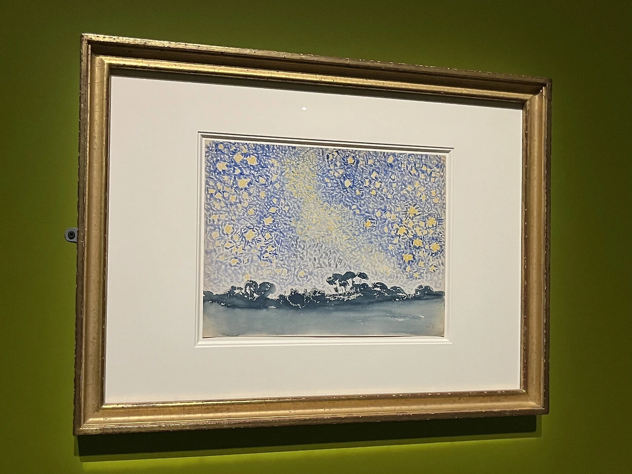 사람이 정말 많아서 겨우 빠져나와 이동한 세 번째 섹션, Section 3 - 영원한 순간, 자연에서. "산업화 시대에 변화한 자연의 의미와, 야외에서 직접 마주한 풍경을 새로운 시각으로" 그려낸 작품들이 많았는데, 나의 취향을 가장 저격한 섹션이었다. 사실 내가 인상주의를 좋아하는 이유 중 하나가 '자연'이라는 주제를 많이 다루기 때문인데, 풍경에 집중하여 시시각각 변하는 빛과 색채를 담아낸 작품들을 개인적으로 너무 좋아한다. 가장 첫 작품이었던 앙리 에드몽 크로스의 <별이 있는 풍경>. 신인상주의적 기법이 가득 담긴 작품으로 유화가 아닌 수채화와 먹, 펜으로 그려진 그림이 한동안 눈길을 사로잡았다.