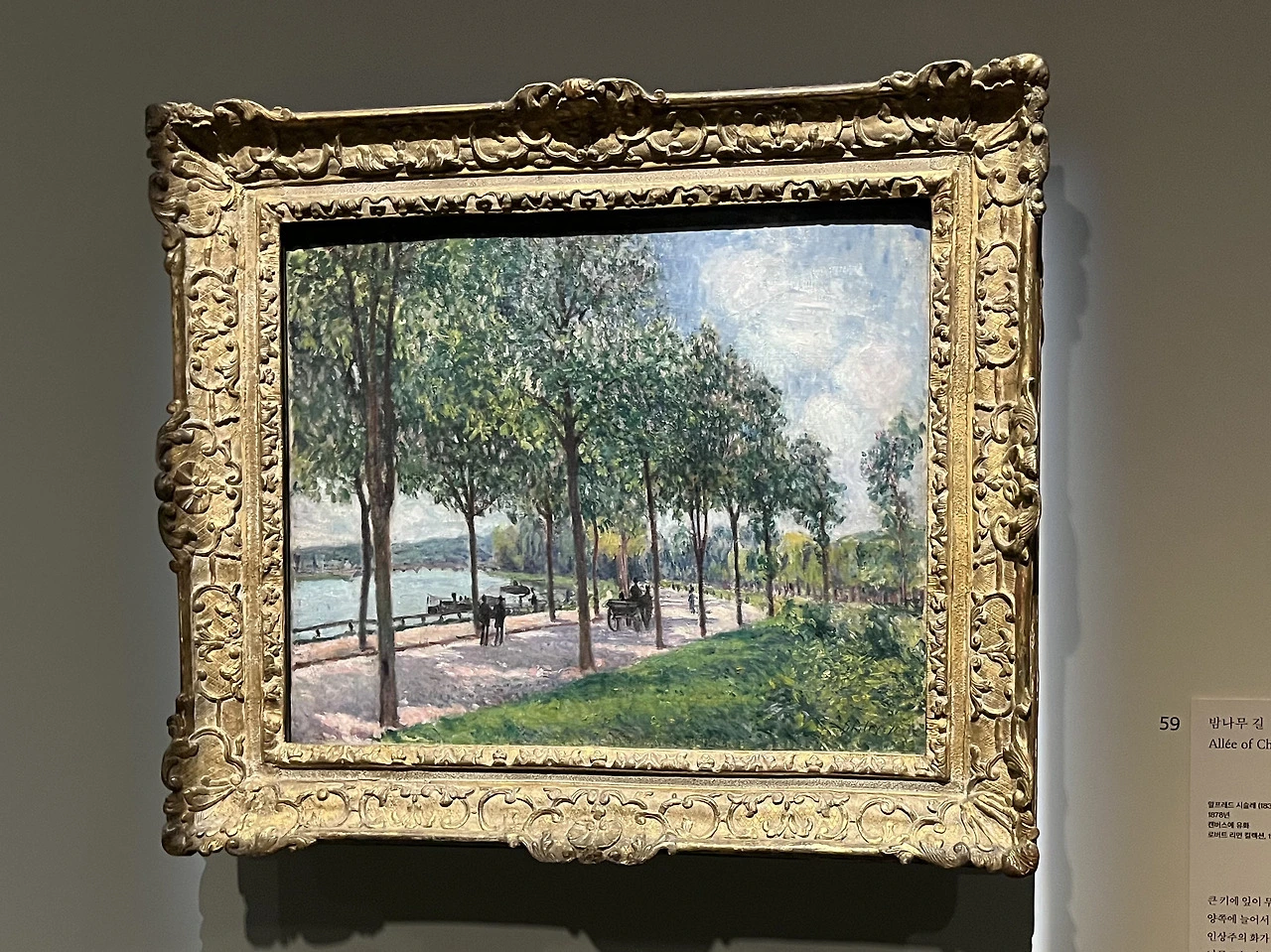 행복했던 세 번째 섹션을 지나 다음으로 도착한 섹션, Section 4 - 서로 다른 새로움, 도시에서 전원으로. "도시, 교외, 농촌을 오가며 변화하는 파리의 모습을 담은 예술가들의 시선"으로 그려진 작품들이 전시되어 있었던 곳이다. 센 강변을 따라 늘어선 울창한 밤나무의 풍경을 담아낸 시슬레의 <밤나무 길>은 무언가 시골과 도시 그 중간의 느낌이 함께 느껴지던 작품이었다. 그 중간의 접점을 완벽하게 담아낸 그림이라 그랬는지 작품에 담긴 '도시'라는 주제가 좀 더 편안하게 다가오던 작품이었다.