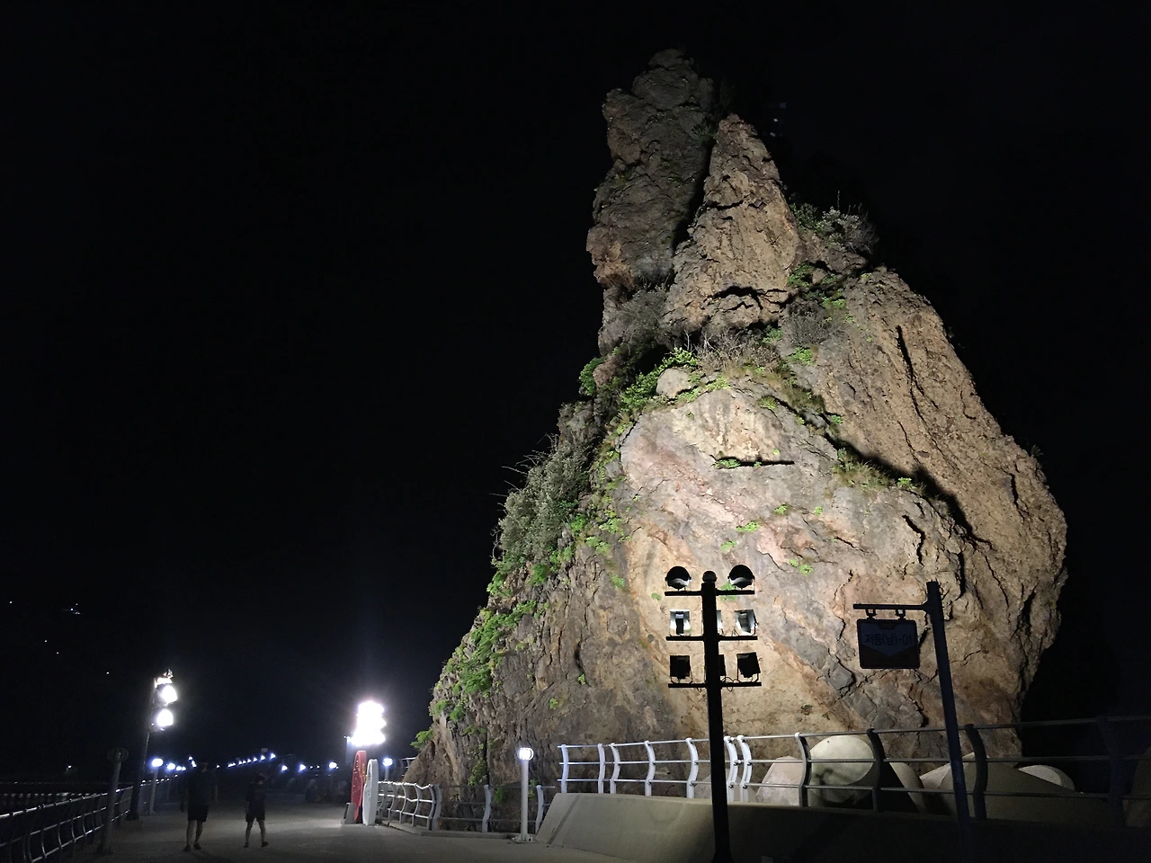 저녁식사를 하고 숙소로 바로 가기 아쉬워 소화도 시킬 겸 저녁 산책으로 하루를 마무리하기로 했다. 저동항의 유명한 명소 ‘촛대바위’를 목적지로 하여 걷기로 결정! 촛대바위 가기 전 작은 터널을 통해 저동해안산책로를 갈 수 있다고 하는데 우리가 갔을 때는 태풍으로 인해 막혀있어서 아쉬웠던 기억이 있다. 오징어잡이 불빛들 덕분에 더욱 반짝이는 울릉도의 야경을 즐기며 저동항을 산책하며 울릉도에서의 첫날을 마무리할 수 있었다. 이야기가 길어져 울릉도 여행 2일 차 이야기는 다음 브런치에서 하기로 하며, 울릉도 여행 1탄은 여기서 끝!