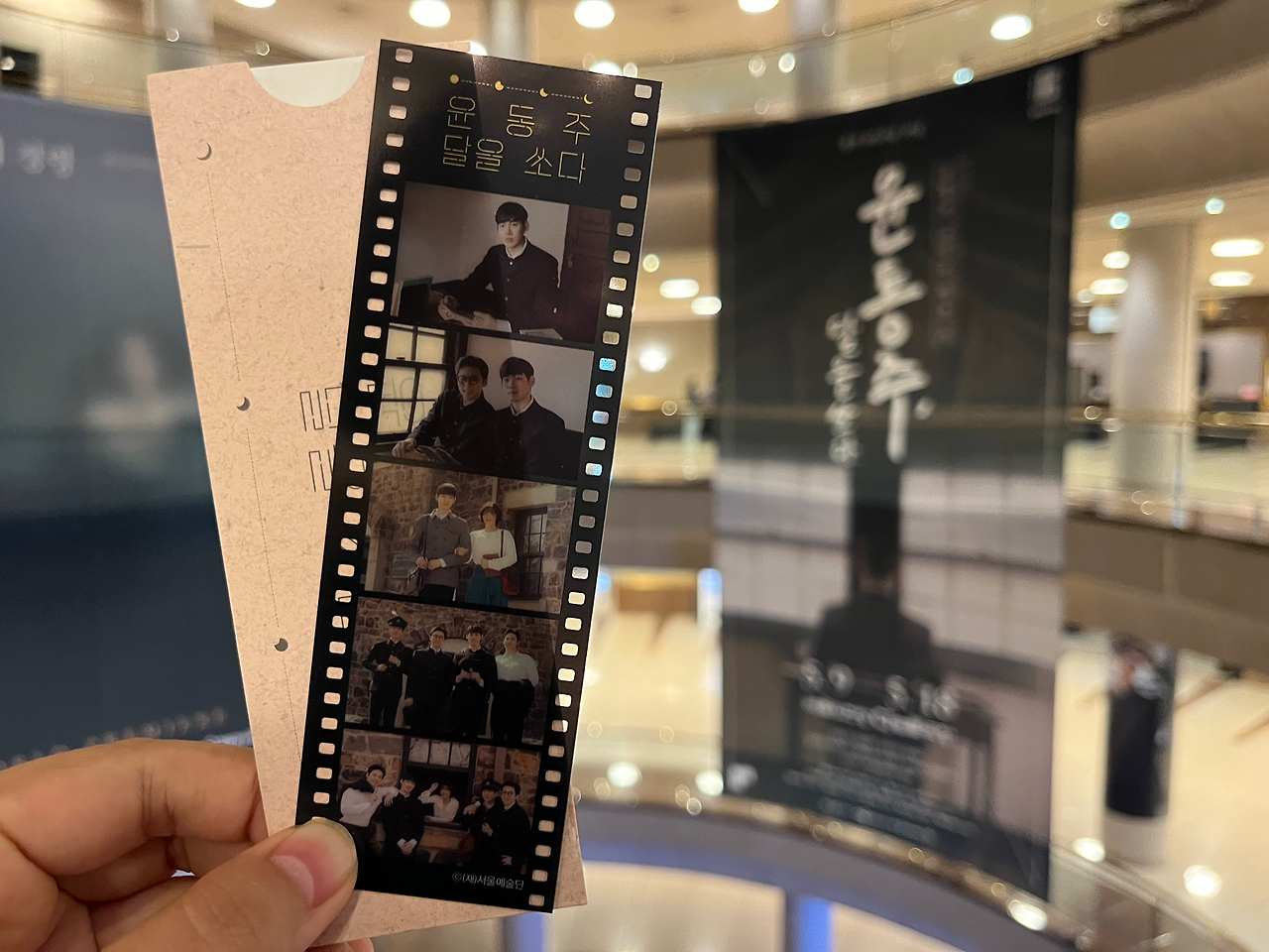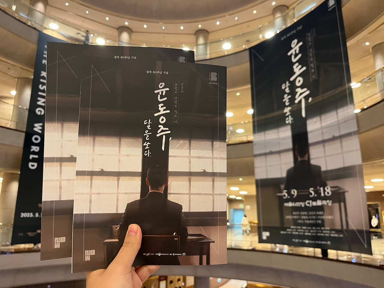 뮤지컬을 좋아하는 사람들이라면 한 번쯤 들어봤을 서울예술단의 창작가무극 <윤동주, 달을 쏘다.>. 일명 ‘윤달쏘’로 유명한 이 작품은 윤동주 시인을 좋아하기에 줄곧 알고 있었던 작품으로, 재연이 올라오면 꼭 봐야겠다고 기다리고 있던 작품. 그렇게 2025년, 윤동주 시인 서거 80주년을 맞아 무려 4년 만에 무대로 돌아왔다. 처음에 창작 가무극이라 해서 뭔가 했는데, 뮤지컬의 형태를 띠면서도 한국적인 소재와 정서를 담아내고 재해석한 공연이라고 한다. 창작가무극의 궁금함과 무대로 만나는 윤동주 시인에 대한 기대감을 가지고 예술의 전당으로!