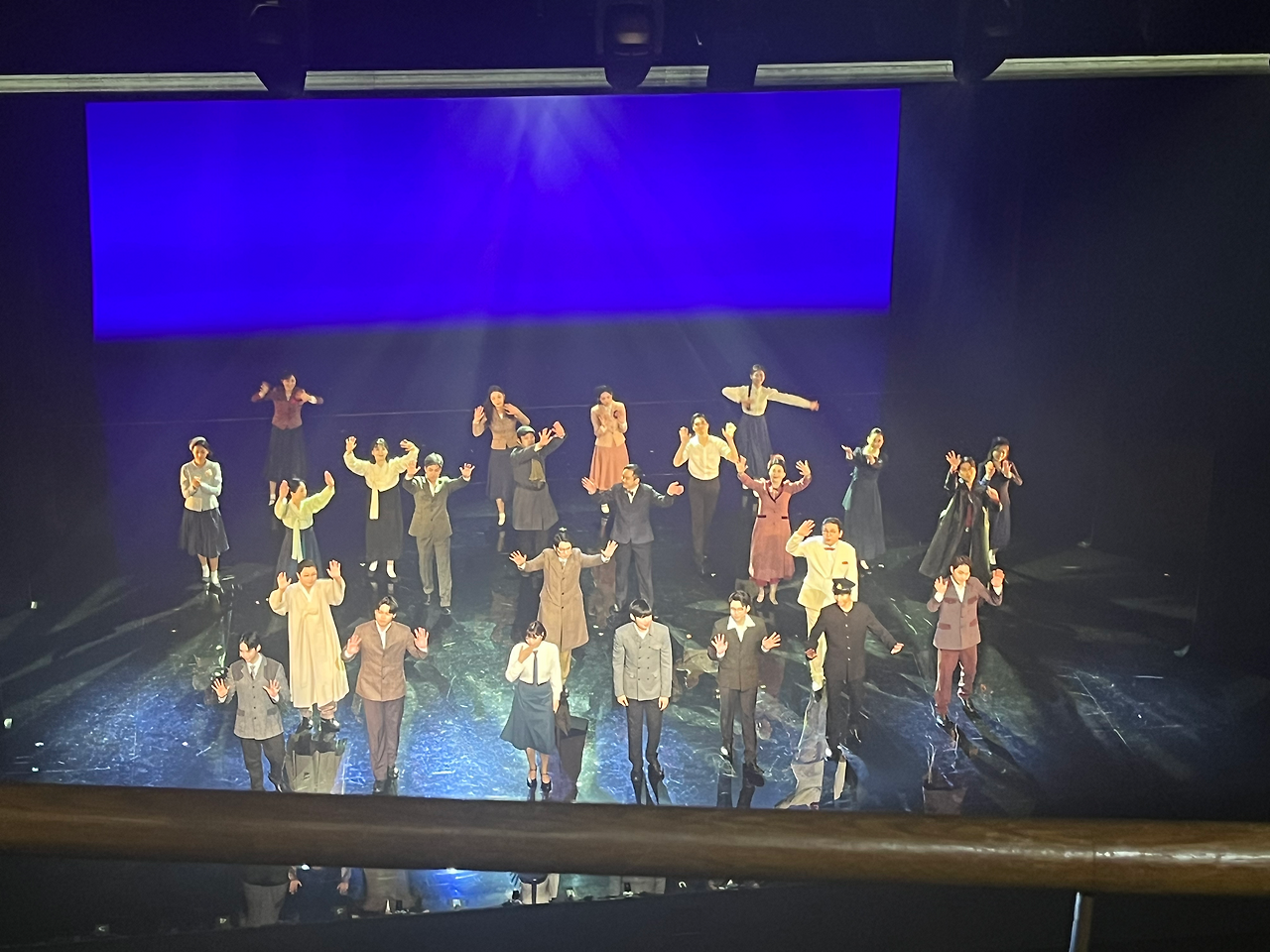 이어지는 2막은 윤동주 시인의 일본 유학생활 이야기와 옥중 이야기로 진행이 되는데, 2막의 여러 장면들 중 가장 좋았던 부분은 <별 헤는 밤>. 사실 이 시를 떠올릴 때면 고요한 밤에 읊어지는 시의 느낌이었는데, 무대 위 울부짖으며 읊는 시가 윤동주 시인의 괴로움을 너무 잘 표현한 것 같다는 생각이 들었다. 마지막 구절인 “그러나 겨울이 지나고 나의 별에도 봄이 오면 무덤 위에 파란 잔디가 피어나듯이 내 이름자 묻힌 언덕 위에도 자랑처럼 풀이 무성할 게외다“ 라는 부분 가까이 다가오는 느낌이 들어 한동안 먹먹했던 마음.