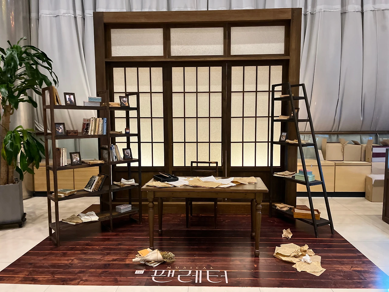 내가 뮤지컬 <팬레터>에 관심을 가지게 된 계기는 우연히 듣게 된 이규형의 '해진의 편지' 넘버였는데, 그 넘버로 인해 2022년 뮤지컬 <팬레터> '사연' 공연을 볼 수밖에 없게 되었더랬다. 사연, 즉 이미 네 번째로 올라온 작품이었기에 인기가 엄청났던 작품이라 표를 예매할 수 있을까 걱정했지만 다행히도 이규형의 공연 예매를 성공하여 행복한 마음으로 코엑스 아티움으로 출발! 도착해서 만난 포토존은 마지막으로 세훈에게 편지를 쓰고 있는 해진이 생각나게 만들었던 곳으로 벌써부터 마음이 찌잉.