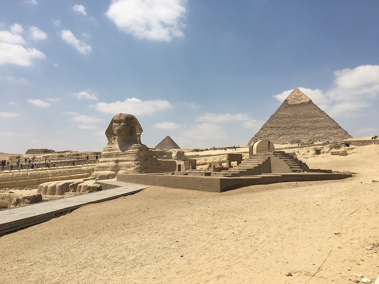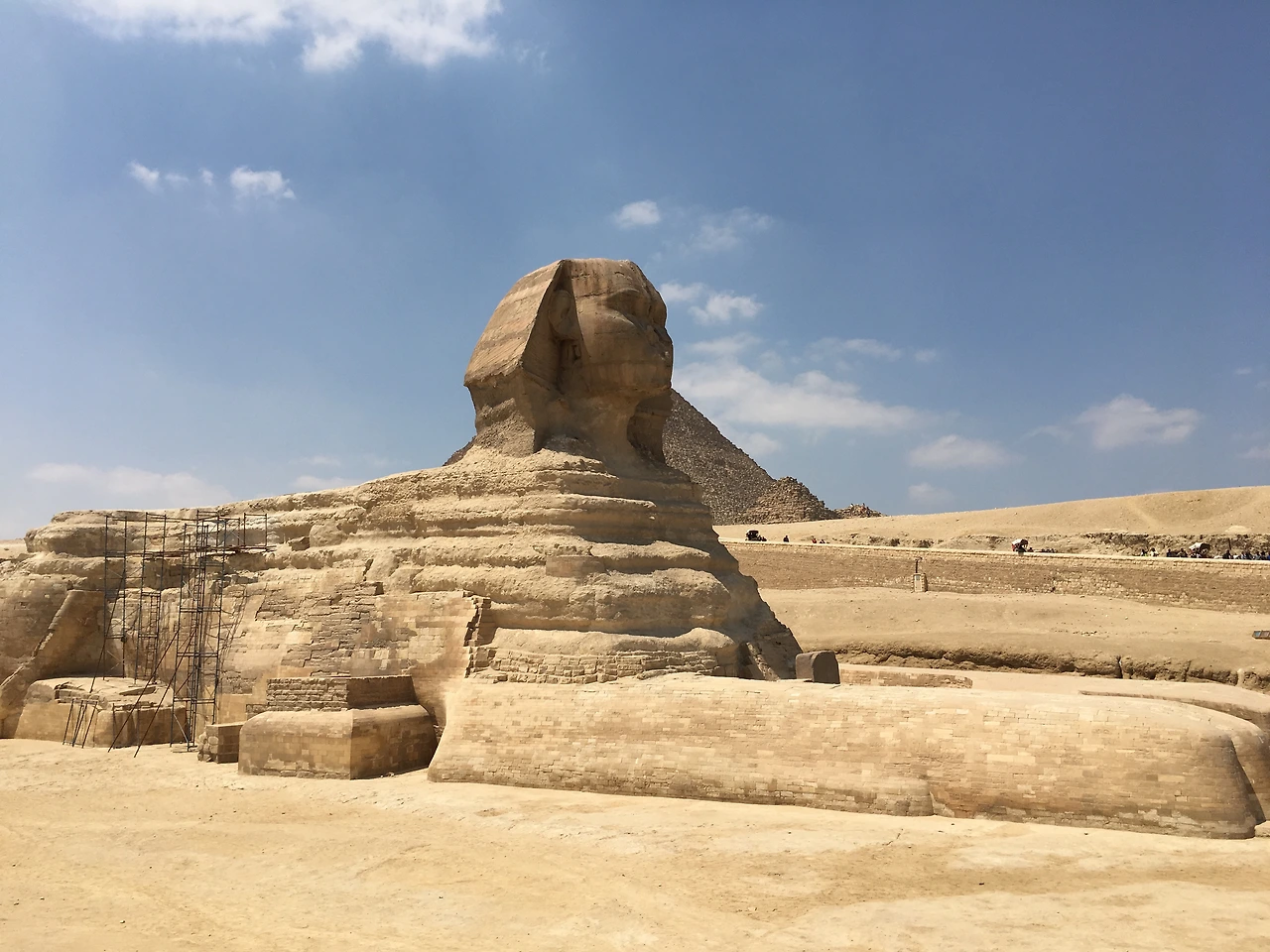 걷고 걸어 드디어 만나게 된 기자의 대스핑크스 (Great Sphinx of Giza). 내 생각보다 거대했던 스핑크스는 어린 시절 한 번쯤은 들어봤을 ‘스핑크스의 수수께끼’로 유명하지만 나에게는 수수께끼보다 더 강렬하게 기억에 남아있는 것이 있다. 바로 나의 최애 디즈니 애니메이션 ‘알라딘’ 속 ‘A Whole New World’ 장면이다. 알라딘과 자스민이 마법 양탄자를 타고 세계 이곳저곳을 날아다니다 스핑크스를 만들고 있는 사람과 눈이 마주치는데, 알라딘을 보고 석공이 놀라서 실수하는 바람에 스핑크스의 코가 부서지는 장면. 스핑크스 코에 대한 여러 가지 설이 있지만 사실은 모래폭풍에 풍화되어 사라진 것이라고 한다.