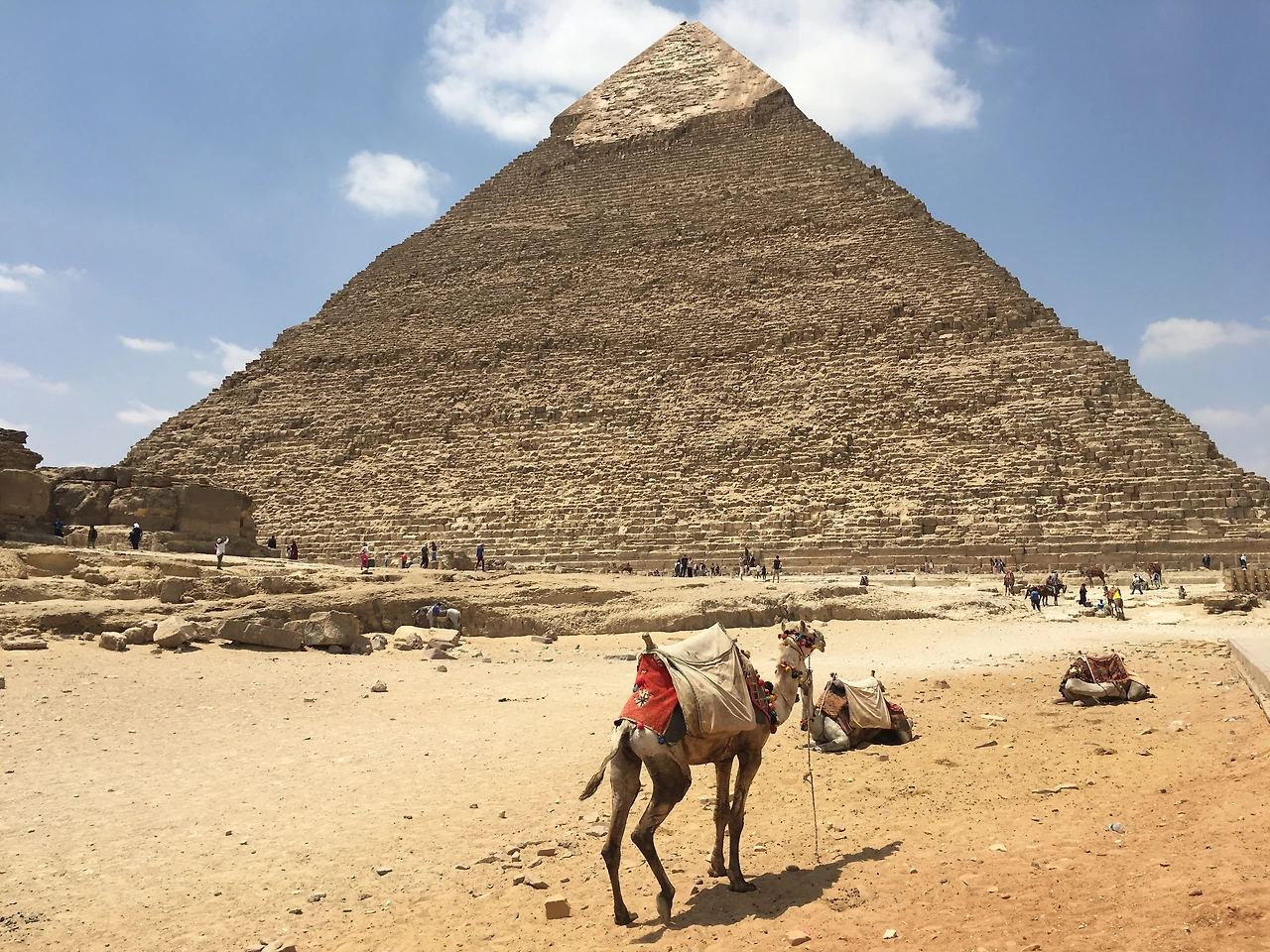 가까이 다가가서 만나게 된 기자 피라미드의 메인 쿠푸왕의 피라미드는 7대 불가사의에 이름을 올린 건축물답게 그저 감탄이 나오는 크기였다. 가까이 다가가서 본 피라미드의 벽돌 사이즈는 굉장히 거대했는데, 무려 4,000년 전 사람들이 거대한 돌을 어떻게 옮겨서 이렇게 높은 피라미드를 쌓을 수 있었을까 아무리 봐도 믿기지 않는 부분.