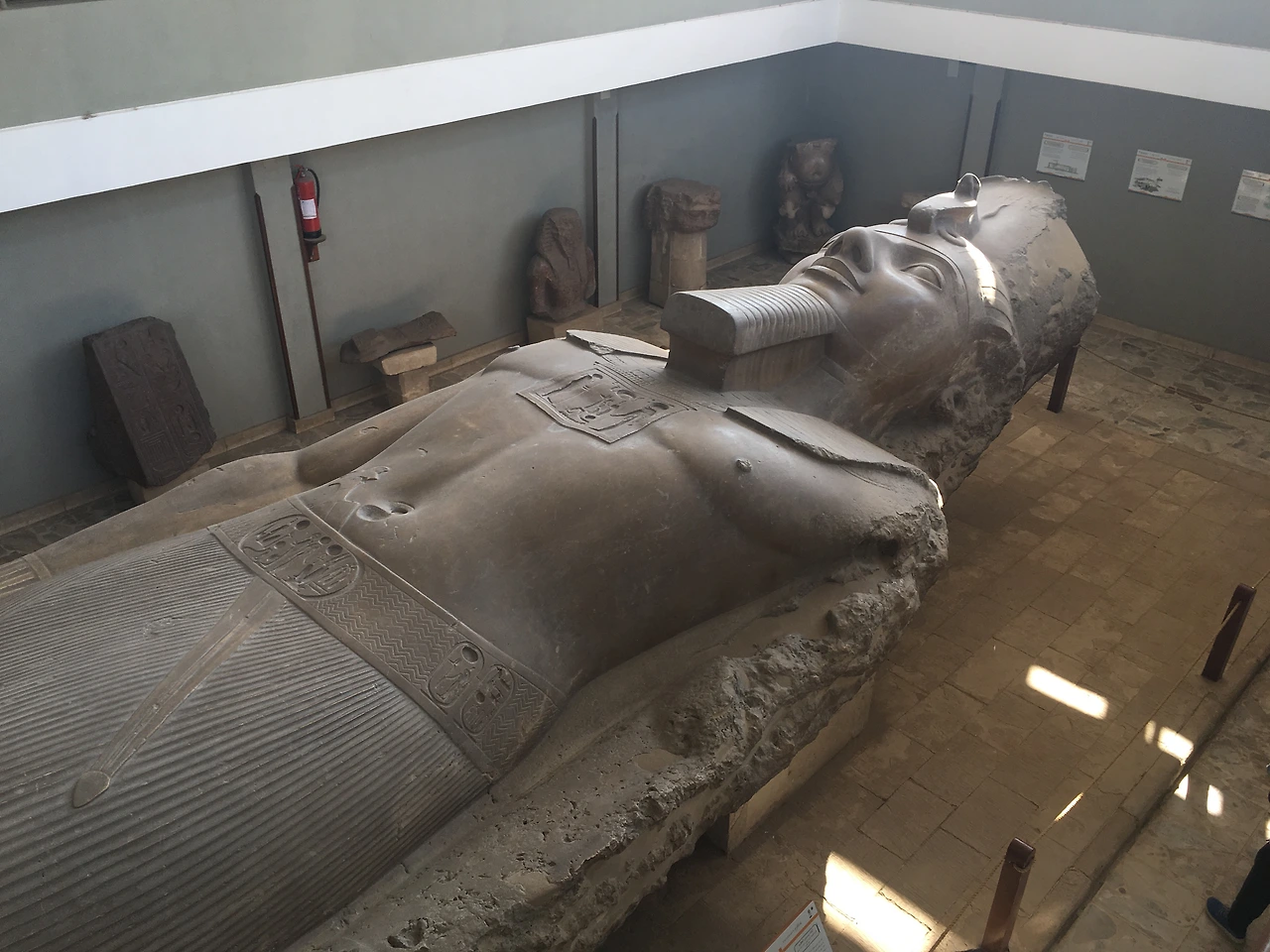 모마와 함께하는 한국인 관광객 그룹이 지나가고, 람세스 2세 거상이 누워 있는 건물로 입장. 멤피스 야외 박물관의 하이라이트이자 이집트 역사상 가장 강력했던 파라오답게 람세스 2세의 거상은 거대 그 자체. 멤피스 야외 박물관에 전시된 람세스 2세의 거상은 2층에서 볼 때도 크기가 거대했는데 1층에서 보니까 더 거대했다. 그 당시 90살까지 장수하며 이집트를 66년이나 통치하고, 아부심벨 신전을 건축할 정도로 강력하고 위대한 파라오였으니 이집트 어딜 가도 보이는 람세스 2세의 석상들이 이해가 가긴 했다.