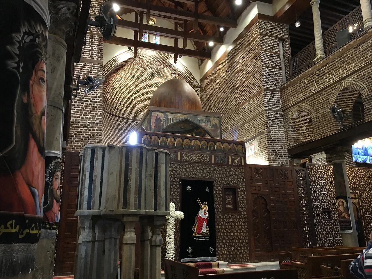 콥트 카이로에 도착해 가장 먼저 구경을 시작한 곳은 공중 교회 (The Hanging Church). 공중 교회를 방문한 사람이라면 모두가 느낄 텐데, 도대체 어디가 공중에 떠있다는 건지(?). 바빌론 요새의 계단 위에 지어져 약간 떠있는 모습으로 인해 ‘공중’이라는 이름이 들어간 곳이라고 한다. 사실 이 교회가 유명한 이유는 이집트에서 가장 오래된 교회이기 때문이다. 나에게 공중 교회가 놀라웠던 이유는 따로 있었는데, 바로 아라베스크 문양으로 되어있기 때문이었다. 아라베스크 문양하면 이슬람 스타일로 알고 있어 왔던 터라 참으로 오묘한 느낌이 들어 다른 의미로 놀라웠던 곳.