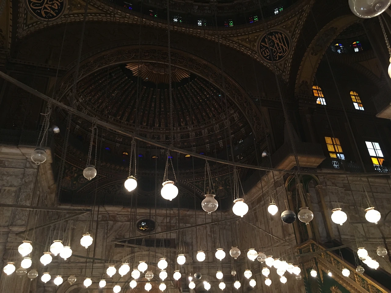 회랑을 지나 들어가 본 무함마드 알리 모스크의 내부는 역시나 번쩍번쩍. 여느 모스크와 같이 수많은 램프와 샹들리에, 그리고 색색별로 다른 스테인드 글라스까지. 재미있게도 외관은 튀르키예의 블루 모스크의 느낌이 있었다면, 내부는 아야 소피아의 느낌을 가지고 있었다. 모스크 안을 둘러본 후 바로 카이로의 전경을 보러 시타델의 전망대로 이동!