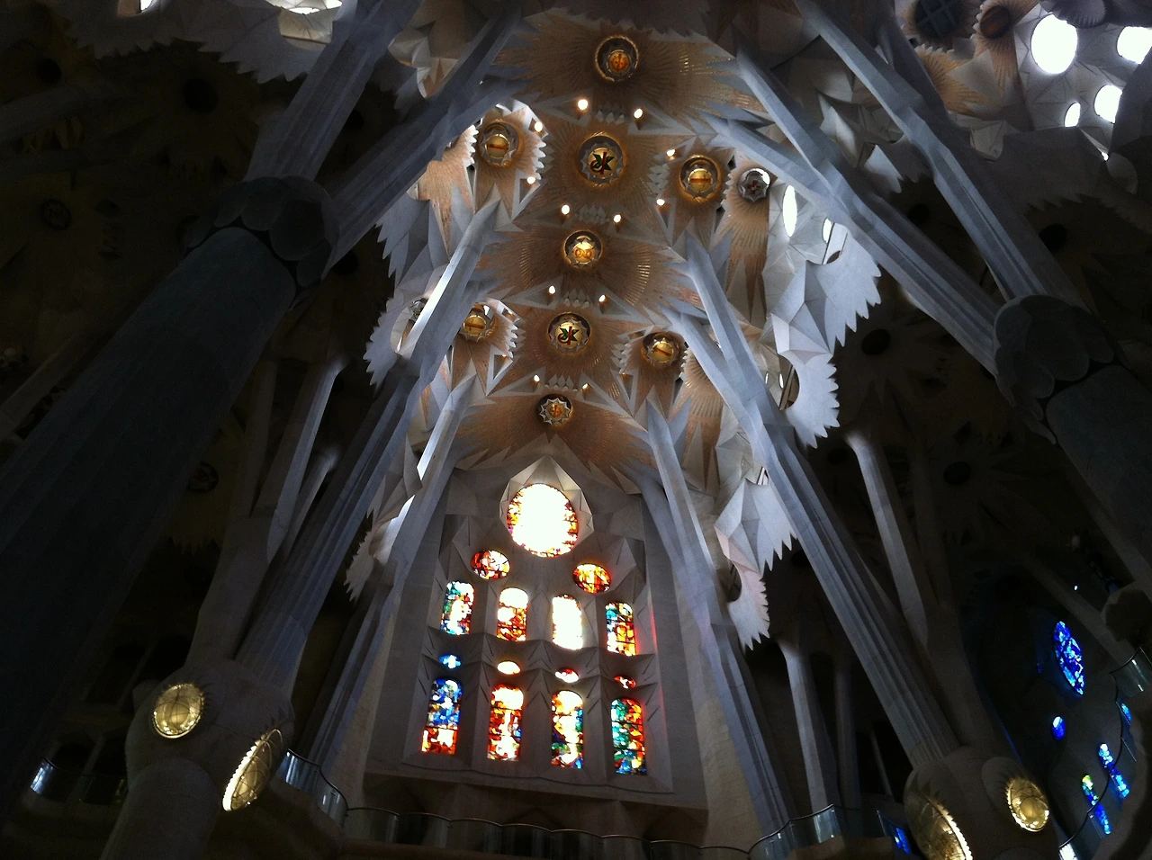 각각의 의미를 담고 있는 사그라다 파밀리아 대성당의 기둥들은 나무를 표현한다고 한다. 각 나무 기둥에서 뻗어 나온 가지들이 천장에 닿아 잎사귀와 꽃을 피워내고 있었다. 고개를 들어서 대성당의 천장을 바라보니 거대한 야자수의 잎사귀 아래 서있는 기분이 들었고, 또 시선을 아래로 두니 스테인드 글라스를 통해 들어오는 다양한 색의 빛들로 인해 숲을 걸을 때 나뭇잎 사이로 스며드는 햇살을 바라보고 있는 기분이 들었다.