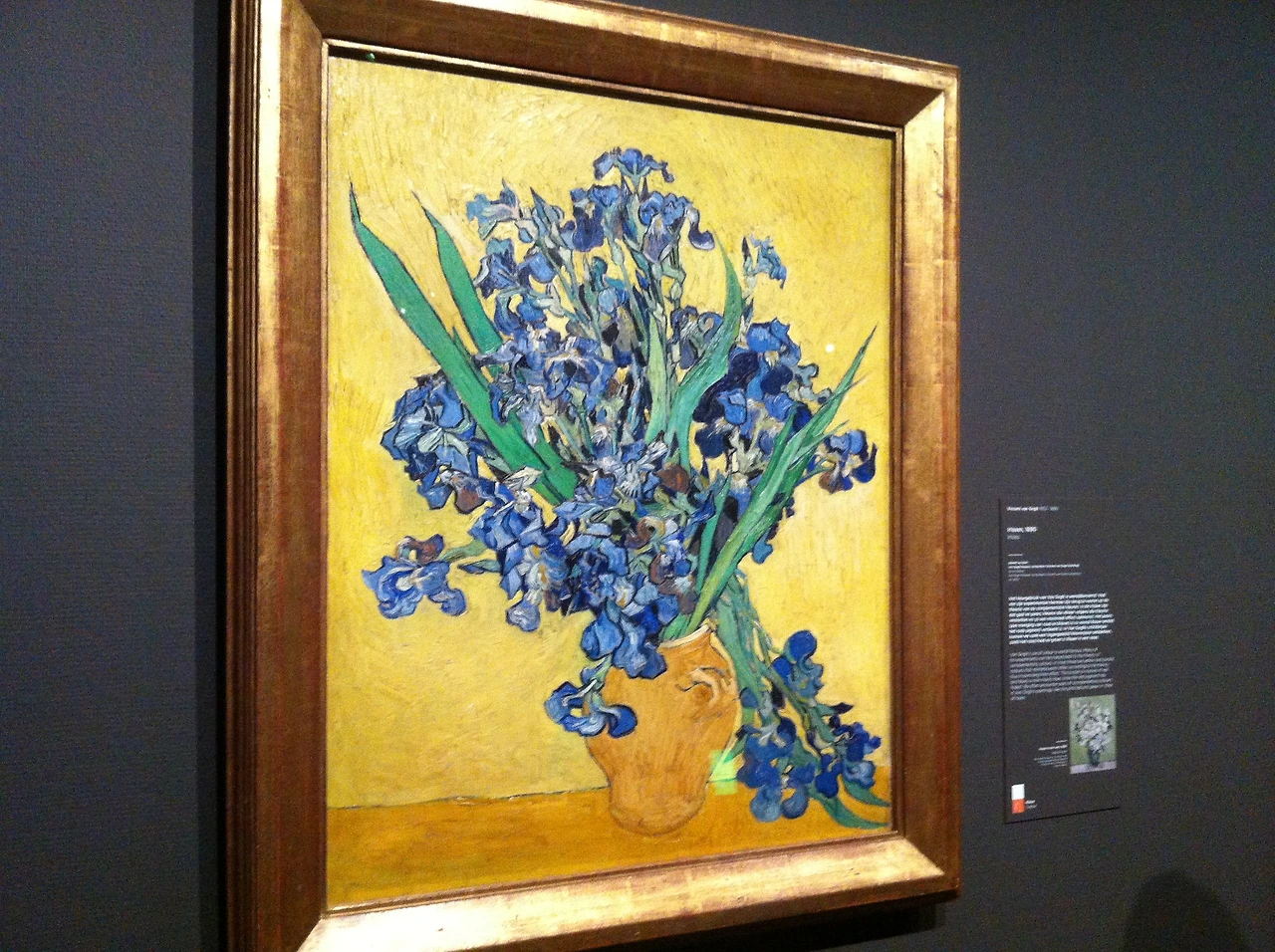 1890년 작품, <붓꽃> (Irissen, Irises). 고흐에게 있어서는 가장 어두웠을 시간이었을 1890년, 생레미의 정신병원에 입원했을 당시 그린 그림이라고 한다. 병원에 입원하고 한 달 후부터 붓꽃을 그려나가며 고흐는 자신이 나아질 수 있을 것이라는 희망의 끈을 놓치지 않았다고 한다.