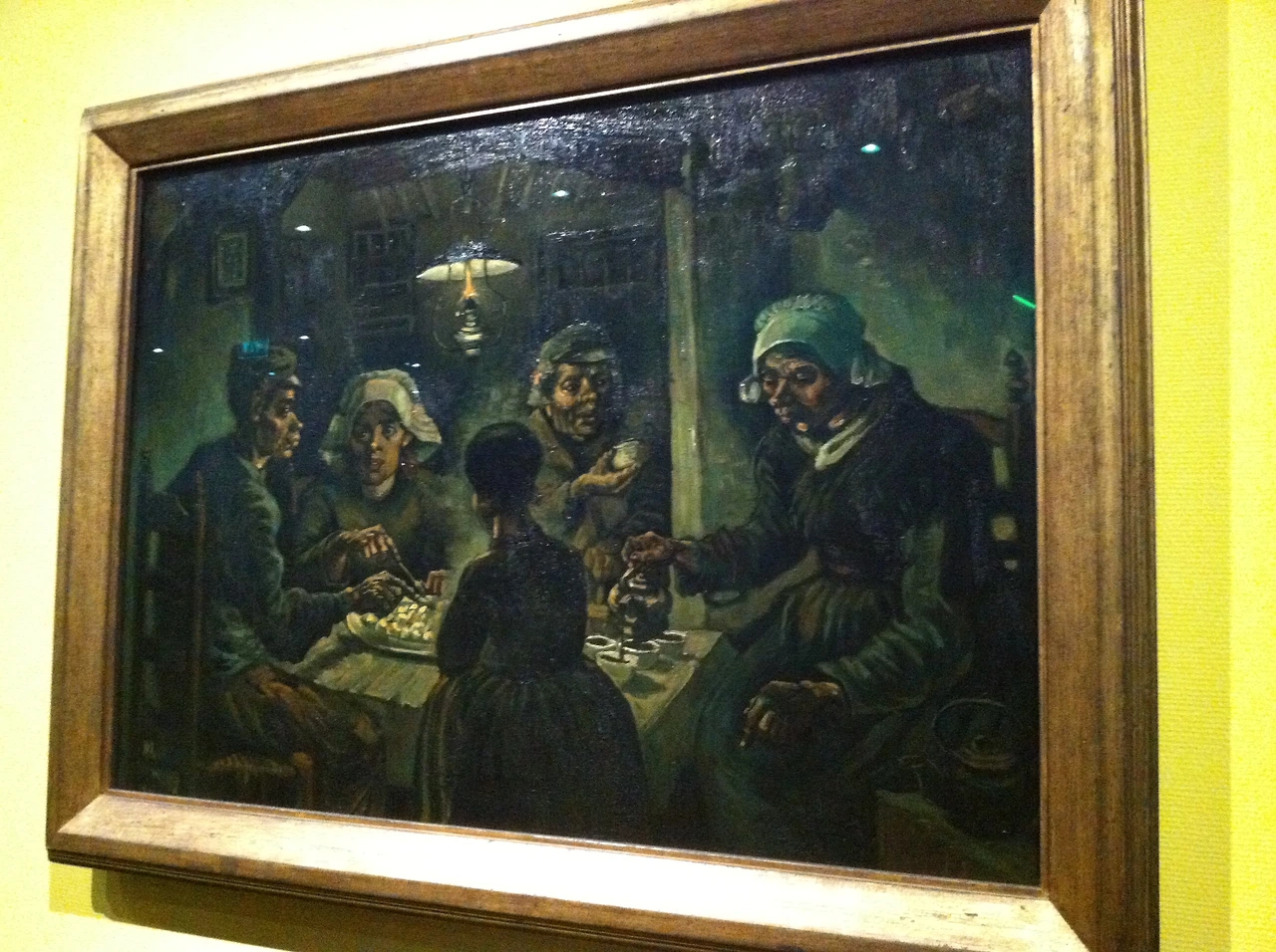 1885년 작품, 빈센트 반 고흐의 초기 대표작인 <감자 먹는 사람들> (De Aardappeleters, The Potato Eaters). 네덜란드 뉘넌에서 그린 그림으로 어두운 색감으로 인해 혹평을 받기도 했지만, 고흐가 자신의 대표작으로 꼽은 작품 중 하나라고 한다.