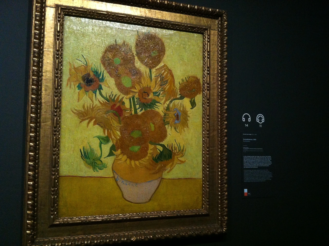 1889년 작품, 고흐의 대표작이라 할 수 있는 <해바라기> (Zonnebloemen, Sunflowers). 고흐가 눈에 담았을 남프랑스의 작열하는 태양을 닮은 해바라기 그림은 배경마저도 그가 사랑한 색, 노란색이다. 이 작품은 고흐의 네 번째 해바라기로, 현재 해바라기 작품은 암스테르담, 런던, 뮌헨, 도쿄, 그리고 필라델피아 총 5곳에서 전시되고 있다.