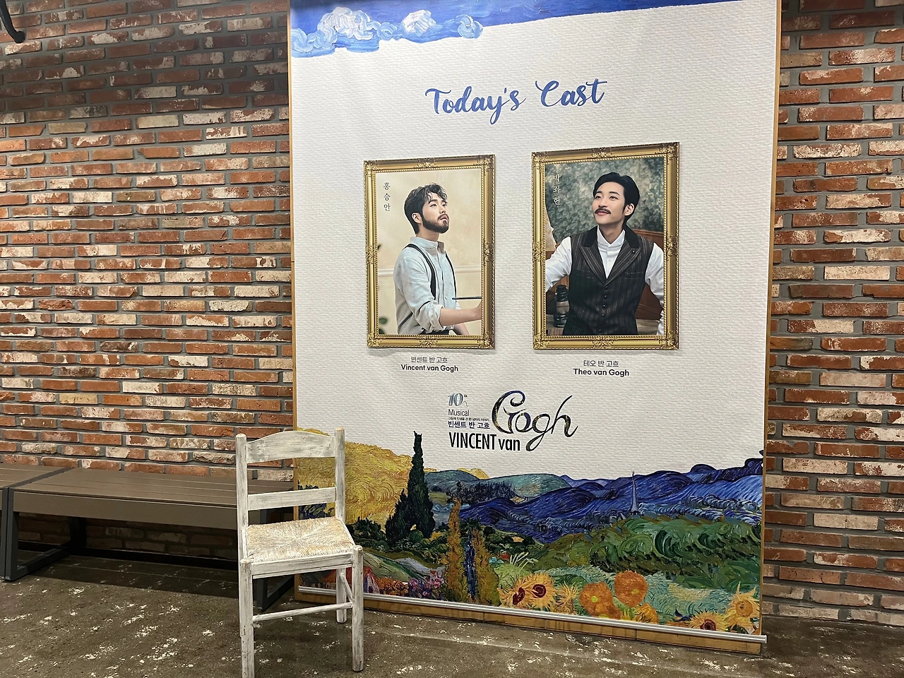 내가 만났던 뮤지컬 <빈센트 반 고흐> 캐스트는 홍승안, 박좌헌 배우. 10주년 기념 공연답게 초연부터 함께한 배우들이 함께 했는데, 내가 만난 두 배우는 이번이 초연. 그래서 오히려 지금까지 무대를 만들어왔던 배우들과는 어떤 다른 빈센트와 테오를 보여줄까 기대가 되었던 뮤지컬 <빈센트 반 고흐>! 캐스팅보드마저도 내가 좋아하는 그림들이라 공연장 들어가기 전부터 설레버린 고흐 덕후.