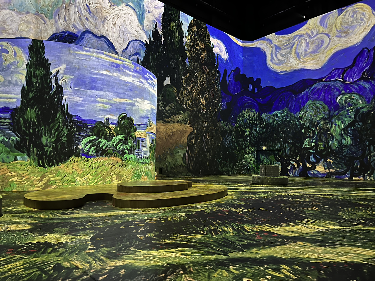왜 유독 고흐의 그림들이 미디어아트 전시가 좋아하는 주제일까 생각해 보면, 아마 자연과 풍경들을 주제로 하는 그림들이 많아서가 아닐까. 인물을 주제로 하는 그림들이 많아 하나씩 하이라이트 되는 이전 작가들의 영상과는 달리, 반 고흐의 그림은 풍경이 계속 연결되며 공간을 가득 채웠다.