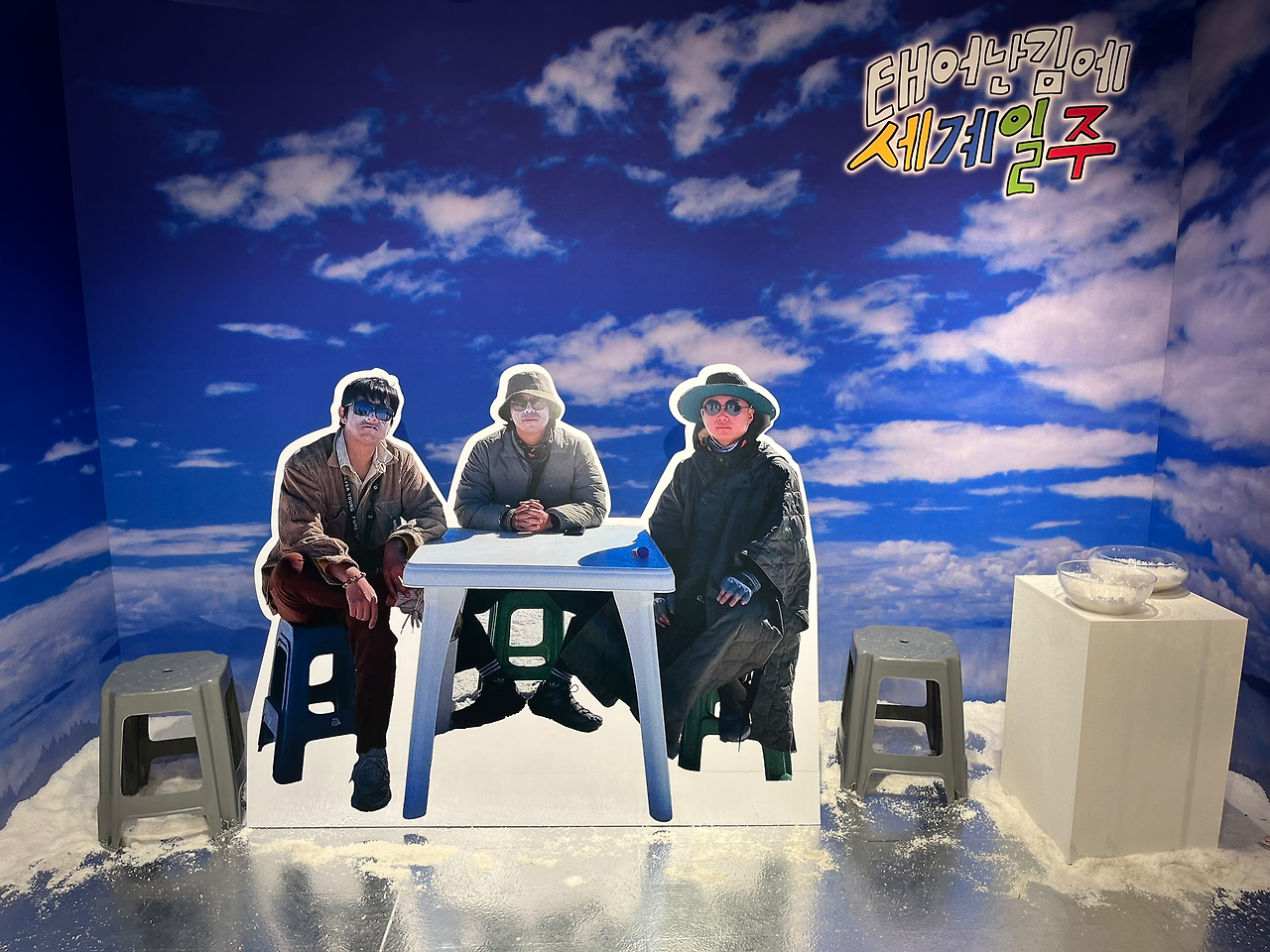 MBC <태어난 김에 하는 팝업> 스토어에는 태계일주 시즌별로 코너가 나뉘어 있었는데, 사진을 찍을 수 있도록 포토존이 꾸며져 있었다. <태어난 김에 세계일주> 시즌 1의 포토존 배경은 우유니 사막 한복판의 점심식사. 각 코너에는 태계일주를 정주행 한 덕후들에게는 웃음 포인트들이 하나씩 준비되어 있었는데, 시즌 1 코너에는 우유니 소금호텔에서 벽에 붙은 소금으로 양치를 하던 기안84를 체험(?) 해 볼 수 있도록 '우유니사막 소금양치' 체험존이 준비되어 있었다. 기안84가 남들과는 다른 보법을 가지고 있다는 것을 익히 알고는 있었지만, 호텔벽에 붙어있는 소금으로 냅다 소금양치를 하던 모습은 영상으로 보는 건데도 뭔가 어안이 벙벙했던(?) 느낌.