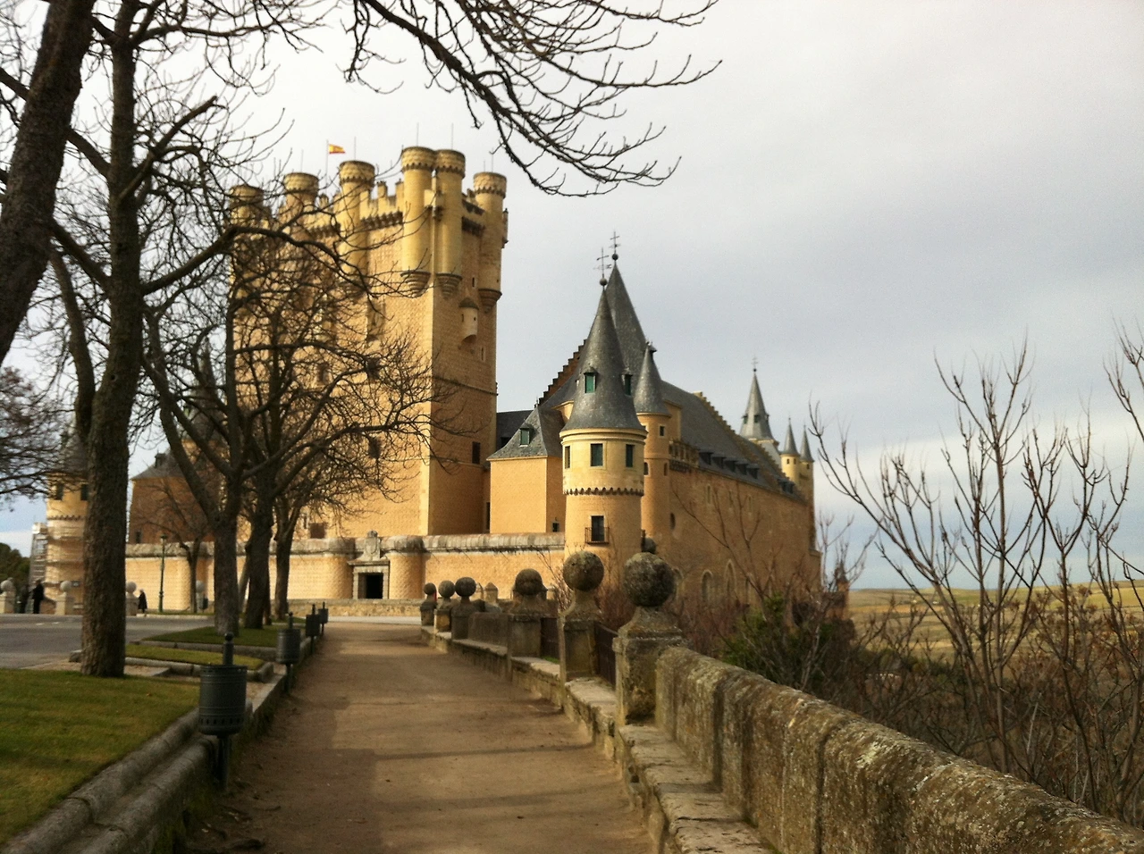 ‘백설공주의 성’으로 유명한 세고비아 알카사르 (Alcázar de Segovia). 스페인어로 ‘성’을 ‘알카사르’라고 하는데, 세고비아 외에도 스페인의 다른 도시에도 알카사르가 있지만 이곳의 알카사르가 유명한 이유는 바로 월트디즈니 백설공주에 나오는 성의 모티브가 된 곳이기 때문이다. 디즈니 백설공주에 나온 성의 모습과 비교하니 고깔모양의 지붕과 절벽 위에 위치한 모습이 굉장히 닮아있었다. 다만 애니메이션에서의 백설공주의 성과는 다르게 이곳은 요새와 감옥 등으로 사용되기도 했다고 한다.
