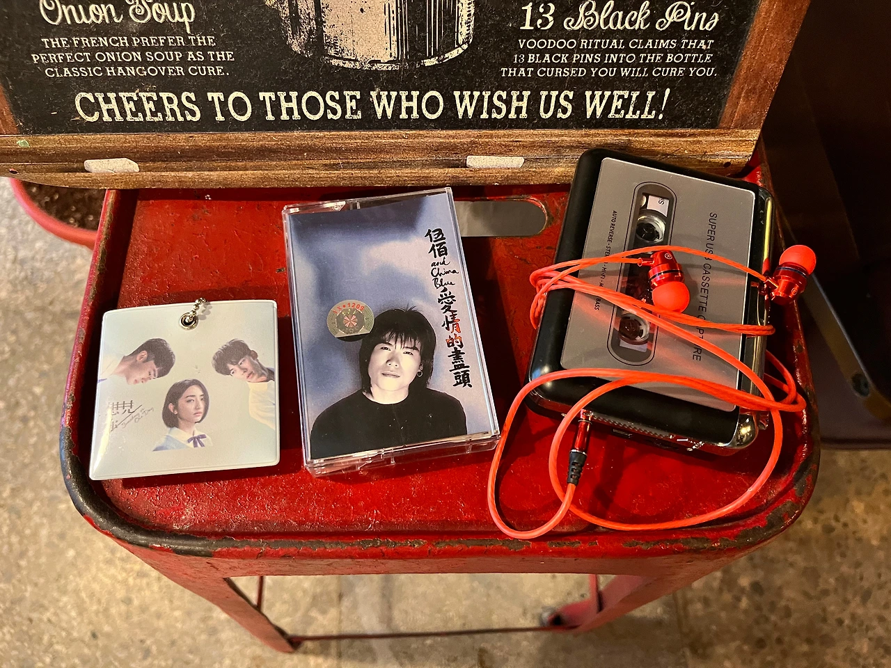 대만의 더위에 지쳐있던 터라 카페에 들어가자마자 아이스 아메리카노를 시켜놓고 천천히 내부 탐방 시작! 가장 먼저 눈에 들어온 것은 바로 상견니 카세트테이프 플레이어와 빨간 이어폰, 그리고 우바이의 Last Dance 카세트 테이프. 카세트 테이프를 보자마자 상친자의 귀에 자동으로 재생되는 "쏘이쟌스 쟝니옌징 비러치라이". 상친자가 아닌 분들을 위해 약간의 설명을 곁들이자면, 우바이의 Last Dance곡의 도입부 가사이다. 상견니에서는 카세트테이프로 이 노래를 재생하면서 타임슬립이 시작되기 때문에 상친자들이라면 외우지 않을 수 없는 가사.
