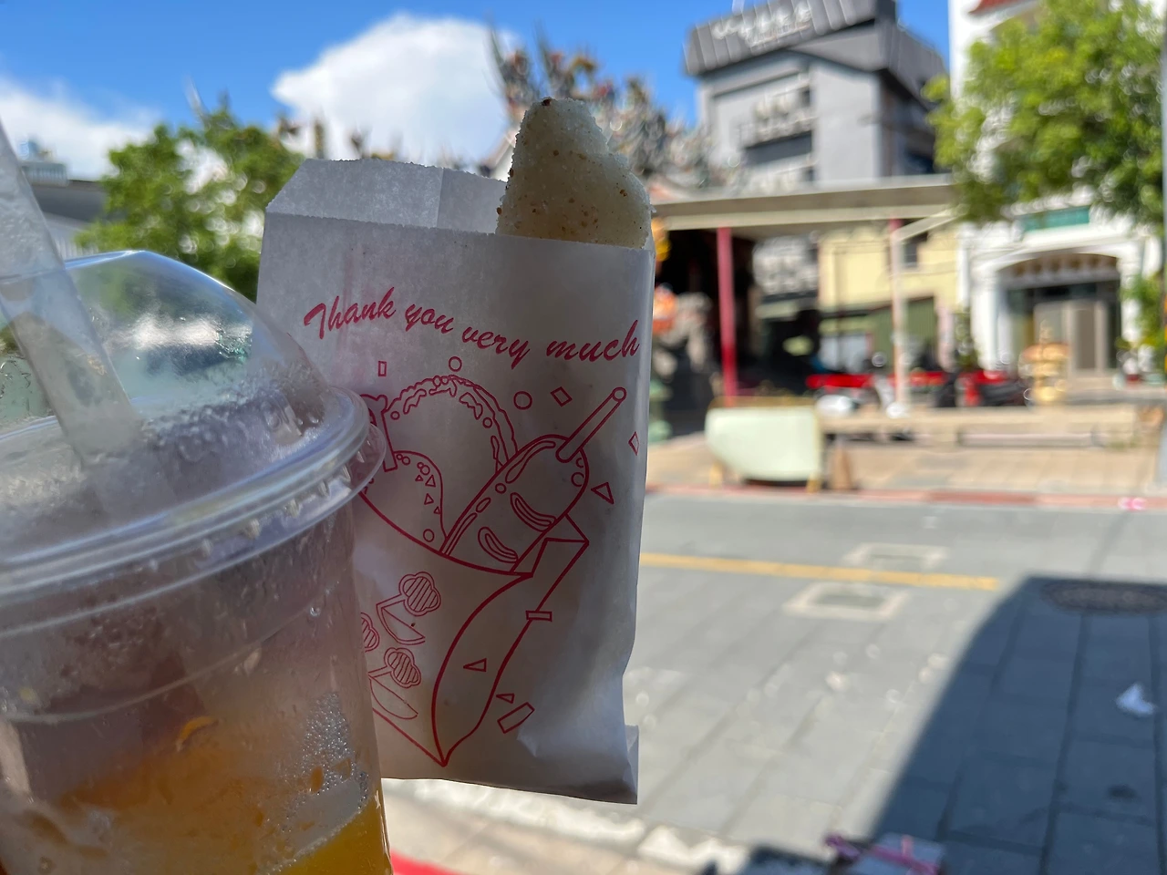 오랜 기다림의 시간을 지나 맛보게 된 바이탕궈. 대만의 남부지방에서 만날 수 있다는 바이탕궈는 타이난이 가장 맛있다고 한다. 바이탕궈는 찹쌀 반죽을 튀겨낸 후 설탕과 땅콩가루를 뿌려먹는 간식. 상견니에서는 ‘설탕 꽈배기’라고 번역되었는데 바이탕궈의 쫀득한 식감은 꽈배기보다는 떡의 식감과 더 비슷했고, 설탕과 땅콩가루가 함께 뿌려져 있어 달달하고 꼬수운 맛을 동시에 즐길 수 있었다. 갓 튀긴 따끈한 바이탕궈를 받자마자 뒤돌아서 인증숏을 찍었는데, 나중에 보니 배경으로 리쯔웨이가 서있던 곳이 나와서 기분이 좋았다고 한다.