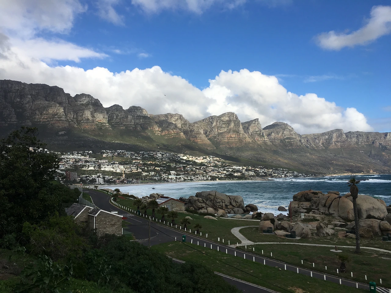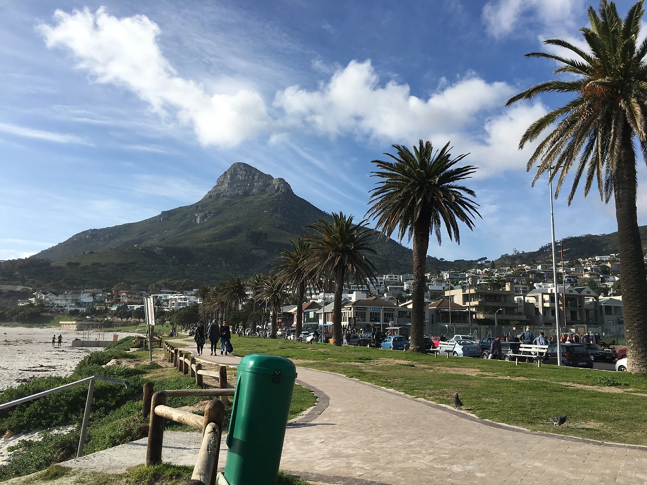 여행 처음부터 일어난 사건이라 충격이 꽤 컸지만, 이 사건이 우리의 여행을 망치게 할 수 없다는 마음으로 다음 장소로 이동했다. 빠르게 보캅을 떠나 도착한 곳은 바로 캠프스베이 (Camps Bay). 캠프스베이는 케이프타운의 유명한 휴양지로 산, 바다, 하늘을 한눈에 담을 수 있었던 곳이었다. 우리가 도착했을 때만 해도 하늘이 우중충 했었는데, 해변을 산책하고 눈앞에 우뚝 서있는 라이언스 헤드 (Lion's Head)도 구경하며 시간을 보내다 보니 어느새 날씨가 화창하게 개어서 기분이 한결 나아졌다.