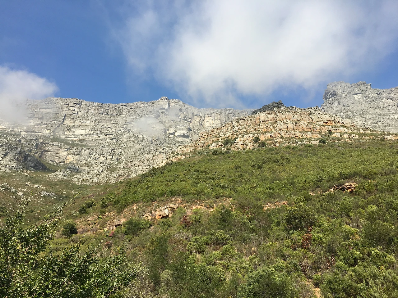 테이블 마운틴의 정상은 케이블카로는 약 5분밖에 걸리지 않지만, 걸어 올라간다면 대략 3시간 정도 소요가 된다고 한다. 여기까지 왔는데 정상에 올라가 봐야 하지 않겠나, 친구와 한참 고민하다가 등산을 시도해 보기로 결정했다. 누가 봐도 등산하러 온 유럽 관광객들의 뒤를 따라 도착한 등산로는 시작부터 완전 돌산에 어마어마한 경사를 보여주었다. 과연 올라갈 수 있을까 말을 하지는 않았지만 의아한(?) 마음을 가지고 등산을 시작했지만, 역시나 신발부터 이미 등산에 최적화되어있지 않았던 우리들은 20분 정도 오르다 결국 포기하고 말았다. 테이블 마운틴 위에서 보는 대서양과 케이프타운의 풍경이 그렇게 아름답다던데, 올라가 보지 못해 너무 아쉬웠지만 이제 여행 이틀차인데 체력을 너무 몰아 쓰지 말기로 하며 아쉬움을 뒤로하고 하산.