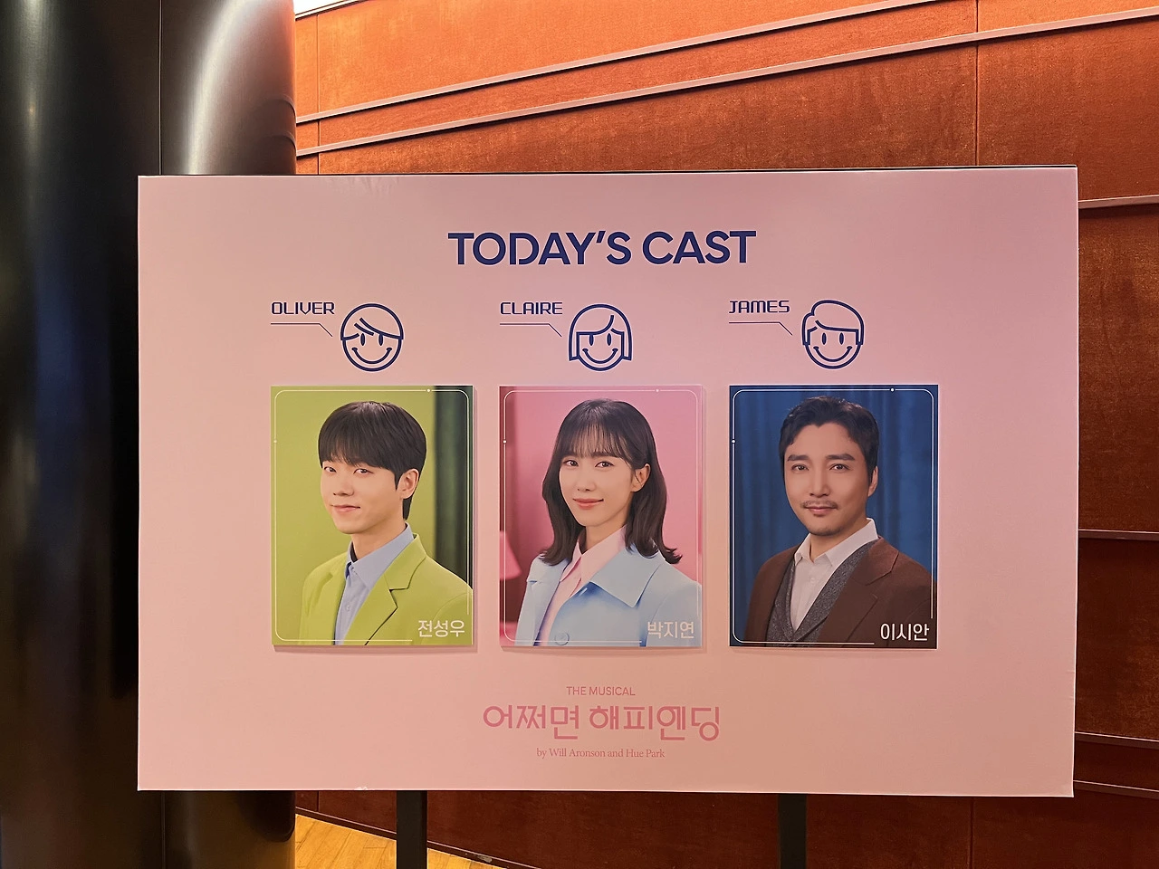 10주년이자 여섯 번째 무대로 돌아온 뮤지컬 <어쩌면 해피엔딩>. 10주년 답게 '어햎'을 함께했던 배우들이 다시 돌아왔는데, 이번 뮤지컬에서 내가 만난 캐스트는 올리버 역의 전성우 배우와 클레어 역의 박지연 배우. 전성우 배우는 뮤지컬 <블랙메리포핀스> 초연 때 헤르만 역으로 처음 만나 지금까지 좋아하는 배우고, 무엇보다 2020년에 만나려다 만나지 못한 '올리버'였기에 너무 기대가 되었다. 박지연 배우는 뮤지컬 <레미제라블> 에포닌 역 때부터 만나보고 싶던 배우였는데 기회가 닿지 않다 이번에 '클레어'로 처음 만나게 되었다. 워낙 뮤지컬에서는 유명한 두 배우라 둘의 합이 정말 기대가 되었다.