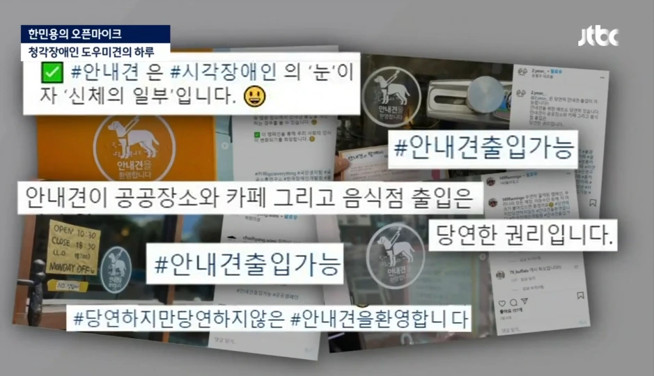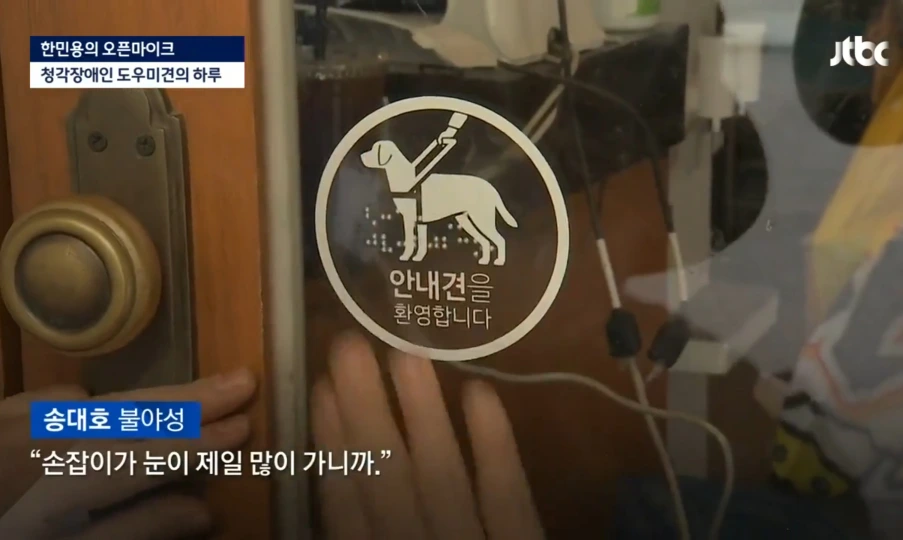 취재 중 우연히 만난 '안내견 환영 스티커'