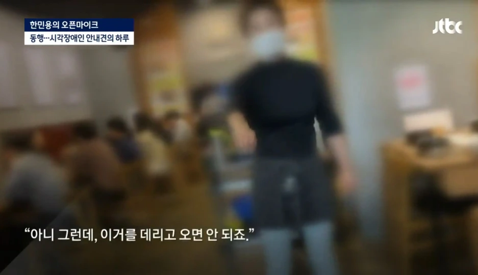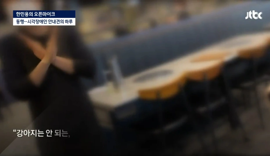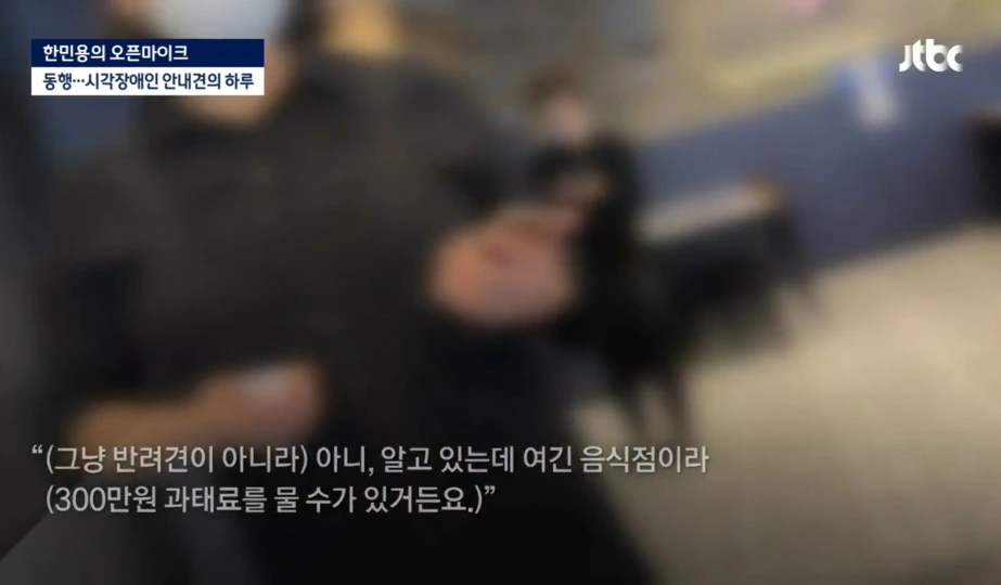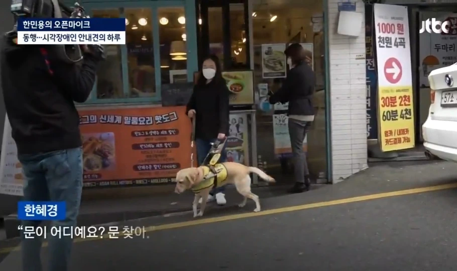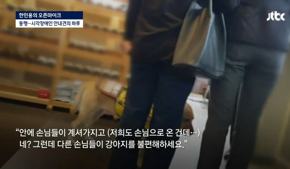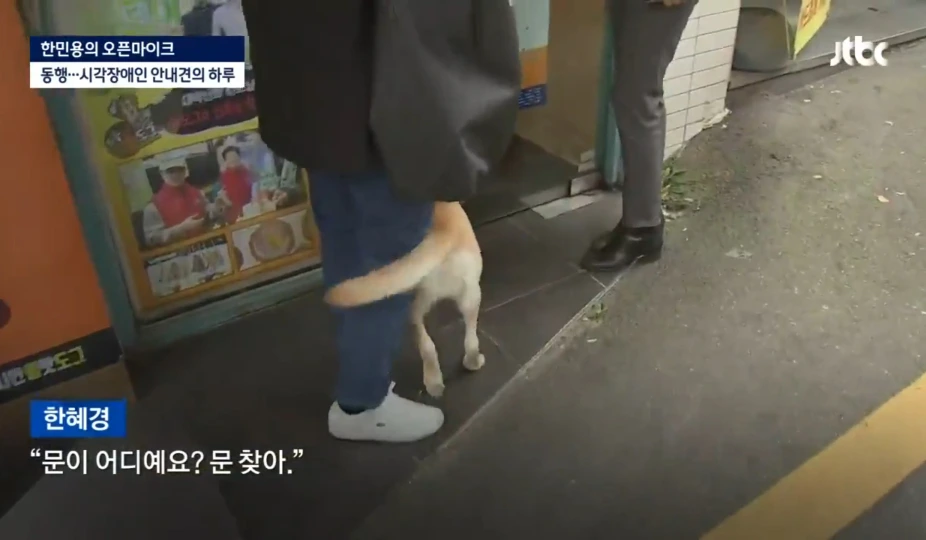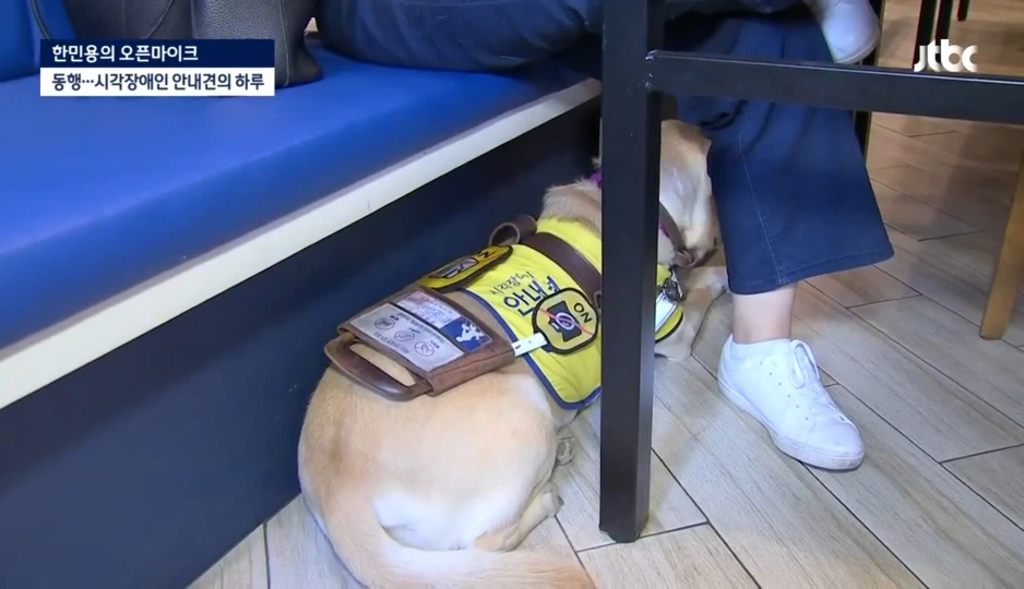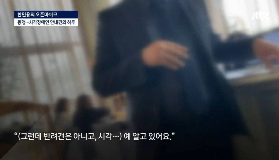 "저 사실은 jtbc에서 나왔는데요. 안내견의 하루를 취재 중이었어요. 다른 식당은 다 저희를 거부했는데, 왜 받아주신 거예요?"