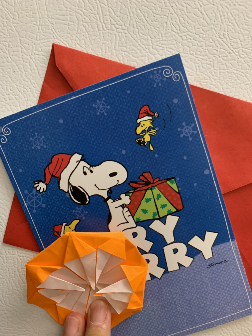 친구 아들내미가 수줍게 건넨 크리스마스 카드입니다. 꽃까지 접어 주는 센스, 귀여워라. 스윗가이 당첨, 그래 살다 보니 사람은 다정한 게 최고더라, 이모는 망했지만 꼬맹아 넌 잘해보렴.