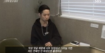 당신 논리대로라면, 악플 싫다고 징징대는 연예인은 연예인 자격이 없으니 당신들이 애초에 관심 주지 말고 악플 달지 않았으면 되는 거잖아. 빌어먹을.