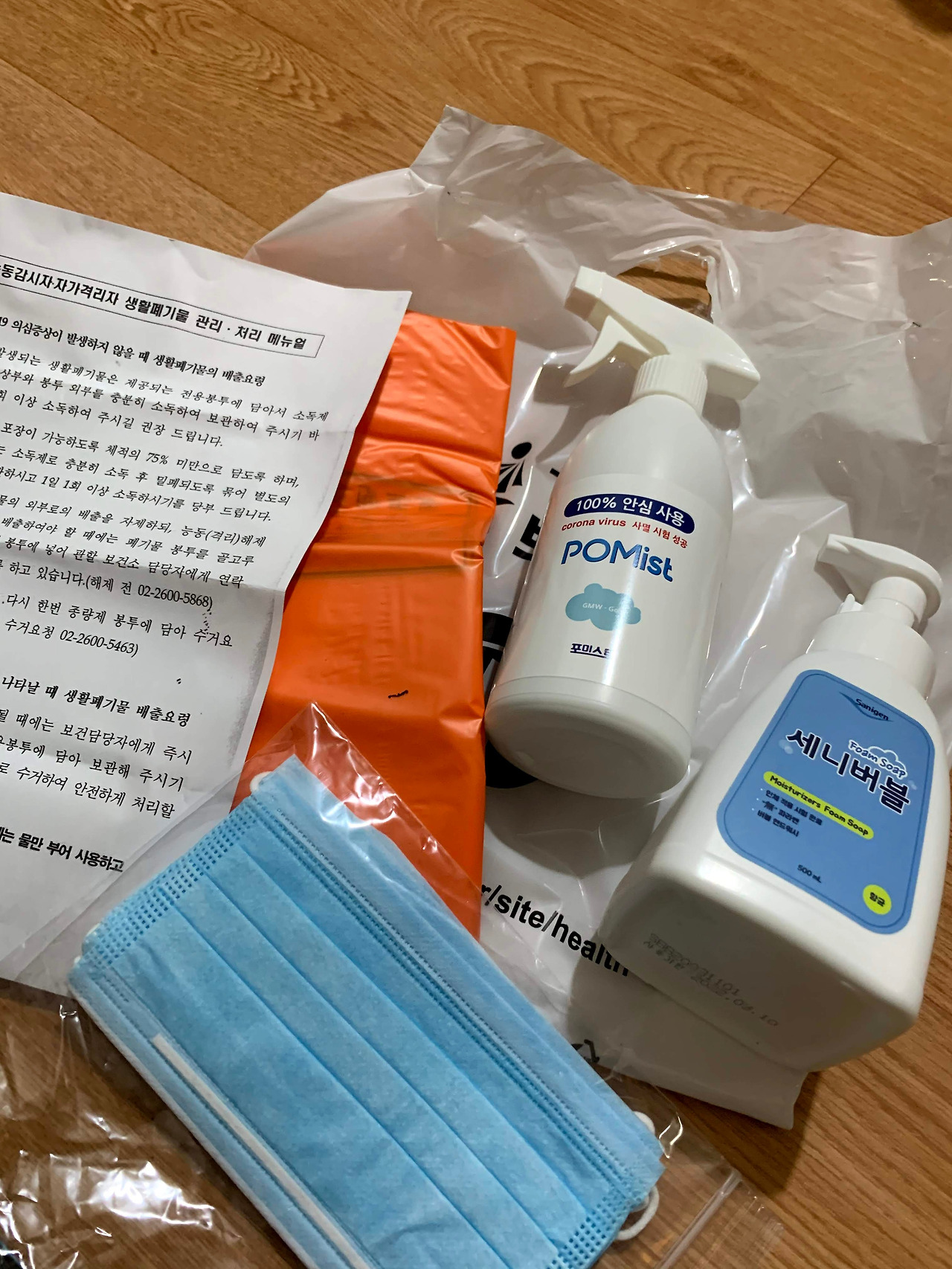 아직 별다른 증상은 없으니 이대로 이 시기가 잘 지나가길 희망해 봅니다. (아마 양성이었으면 구청에서 연락이 왔을 텐데 음성이어서 그대로 두는 것 같습니다) 그나저나 대한민국 정부 일 진짜 잘하네요. 보건소에서 손소독제 마스크 같은 건 물론이고 빨간색의 쓰레기봉투까지 줬어요. 디테일은 악마의 것인데 아무래도 대한민국 정부가 악마의 손에. 는 농담입니다.