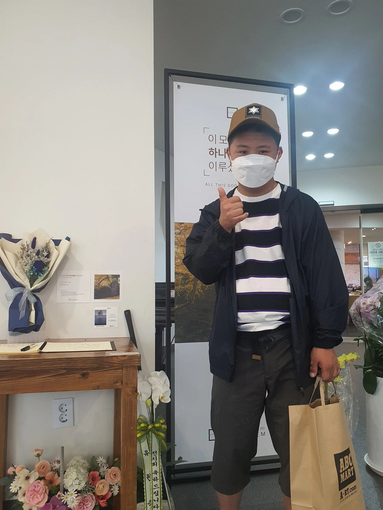 재윤이 할 것은 빨강 삼각형 표시를 발끝 사이에 두고 가만히 차렷 자세로 서 있다가 인사만 하면 되는 것이다.