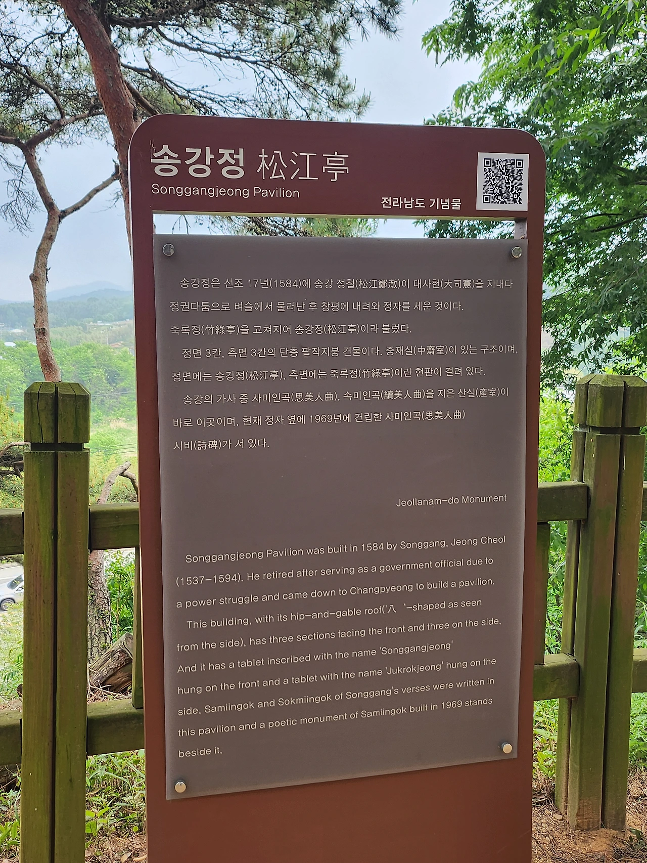 이런 풍경 탓일까? 내가 밟고 있는 땅이 조선 가사문학의 대가, 송강 정철이 사미인곡, 속미인곡 등을 쓴 담양이고 차로 10분도 걸리지 않는 곳에 청평이 있었다. 송강이 왜 술을 좋아 했는지? 이런 풍광을 맞으며 살았으니 글도 나오고 유배의 벌도 선물로 인식하지 않았을까? 여기까지 와서 후회를 남길 수 없다. ENTJ 강사님께 송강의 정취를 맞고 싶다고 했다. 안가면 조퇴를 하겠다고 했다.