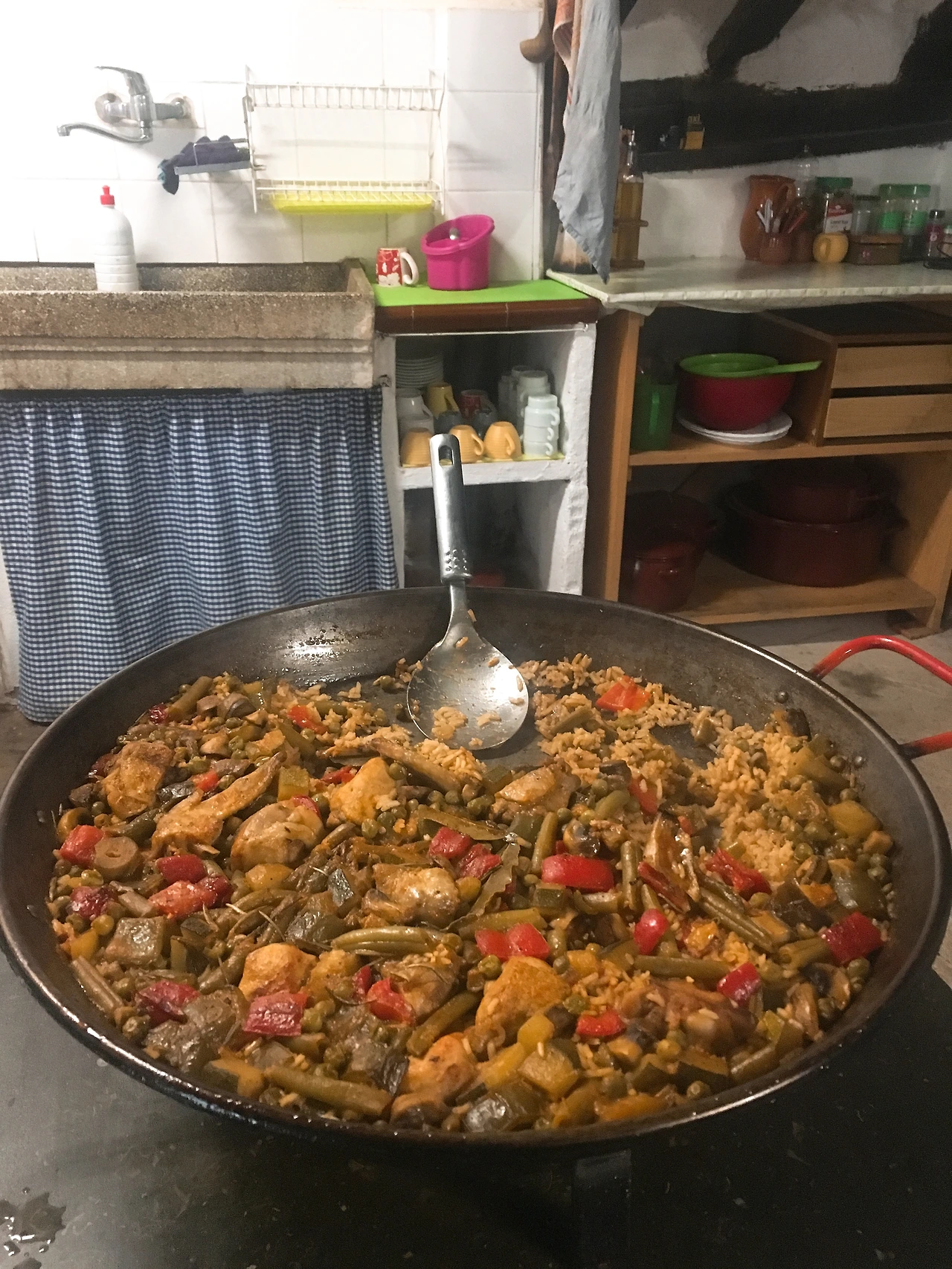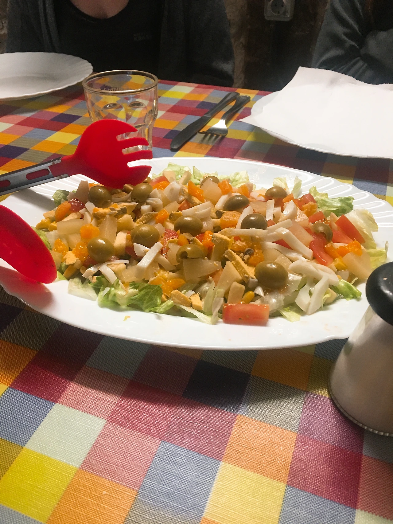 오늘 머무는 숙소는 저녁을 함께 먹고 순례자들끼리 이야기를 나눌 수 있다는 이야기를 듣고 예약한 곳이다. 젖은 옷가지를 빨래하고 식사 시간에 간신히 맞춰 식탁에 앉았다. 식탁에는 생각보다 사람이 다섯 명 남짓 앉아있었다. 푸엔테에서 마주쳤던 울리케와 티나도 있었다. 우리는 빠에야와 샐러드, 와인을 나눠마시며 오늘을 이야기했다.