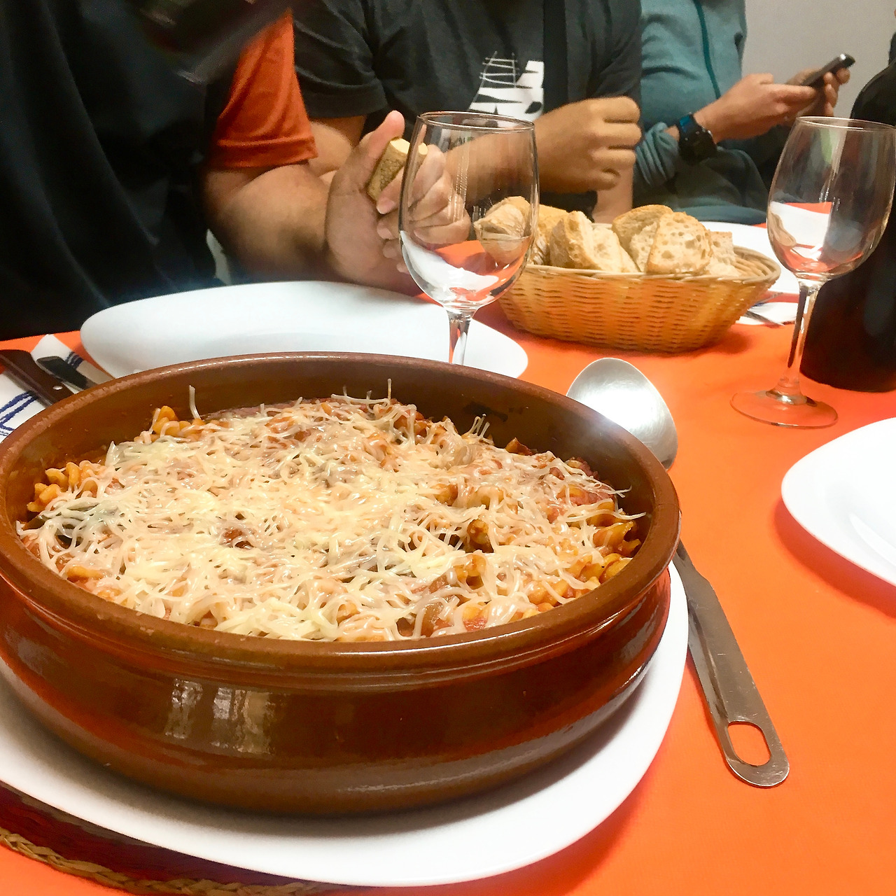 이곳 San Roque 알베르게는 15유로에 숙박과 저녁이 포함되어있다. 우리 돈으로 2만 원 정도니 굉장히 합리적인 가격이다. 메뉴도 정말 알찼다. 빵과 파스타, 닭찜, 디저트로 아이스크림까지. 특히 저 닭찜의 소스와 와인의 조화가 환상적이었다. 와인도 물론 무한제공!