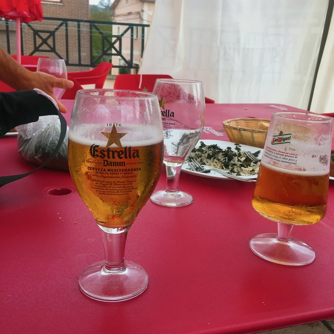 유난히 뜨거운 햇빛이 쬐는 날, 맥주를 참을 수는 없지. 맥주를 하나 더 주문하러 1층에 내려가니 호스피탈로가 나를 반겼다. 이곳 알베르게의 호스피탈로는 MBTI로 치면 EEEE 유형의 사람 같아 보였는데 상냥하고 밝고 쾌활하고 친절했다. 이야기를 나누다 보면 저절로 기분이 좋아지는 사람. 맥주도 아주 인심 좋게 가득 따라주시고!