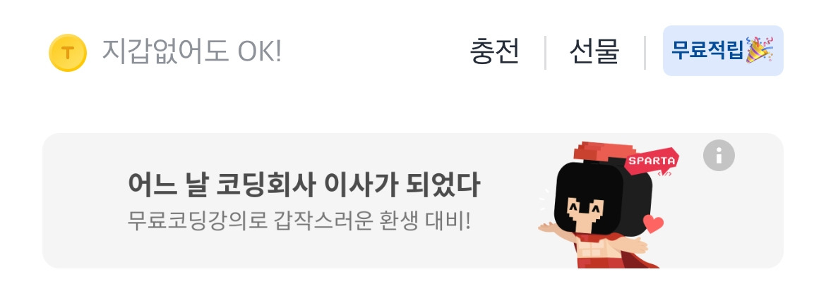 스파르타코딩클럽의 카카오 비즈보드 광고. 광고가 밑도 끝도 없어서 한참동안 보고 있었다. 나는 SQL 강의를 스파르타코딩클럽에서 들었어서 클릭을 따로 하지는 않았는데, 만약 모르는 사람이었다면 한 번 눌러보지 않았을까 싶은 신기한 광고. 쪼끔 아쉬운 건 스파르타 로고가 너무 작았던 점.