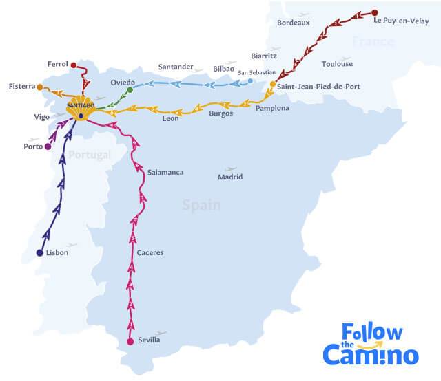 * 산티아고 대성당까지 가는 길은 여러 루트가 있고 길의 이름은 길의 특성을 따른다. 까미노 프랑스길은 순례길의 시작점이 프랑스 생장이라서, 까미노 북쪽길은 스페인 북쪽의 해안선을 따라 걷는 길이라서 이름 붙여졌다.