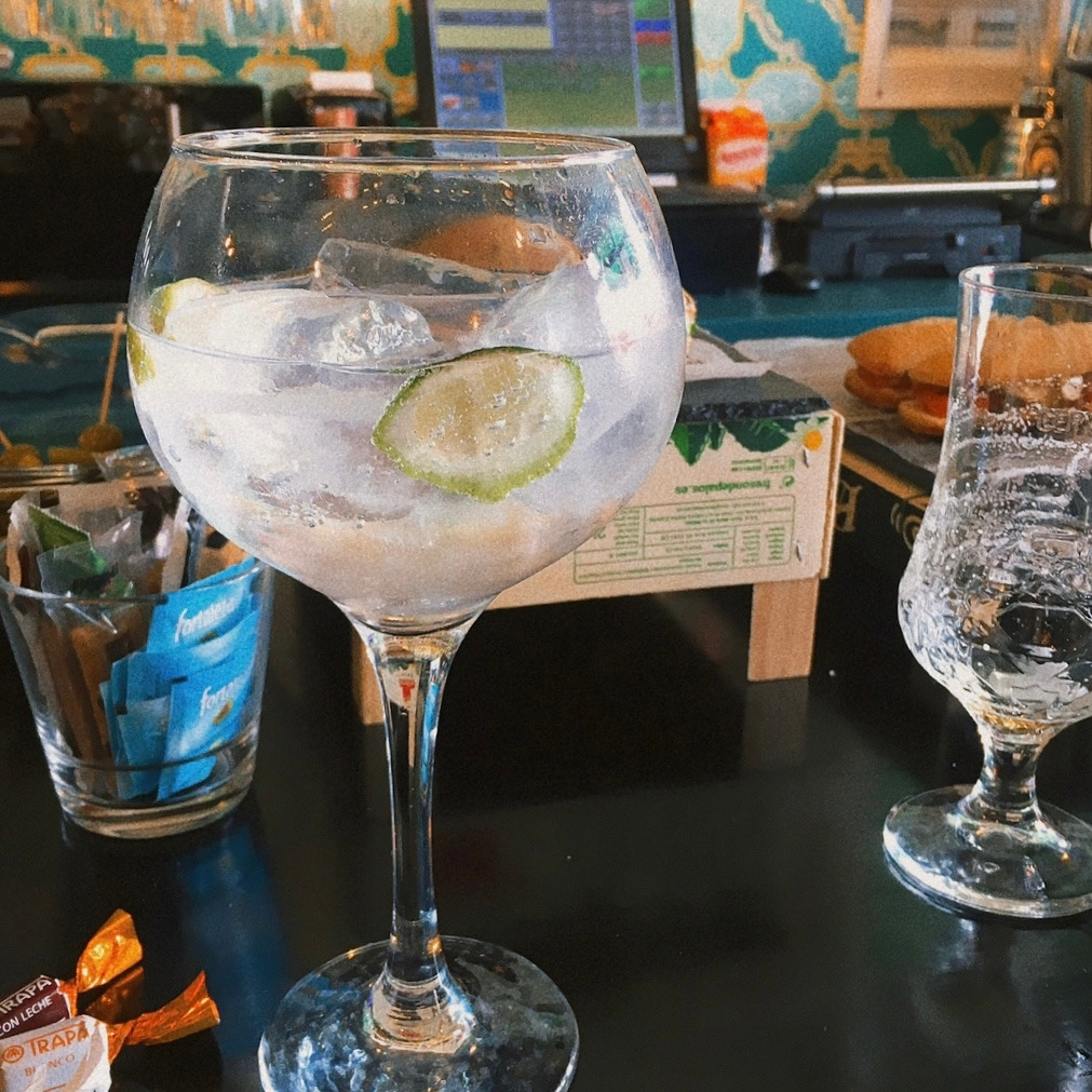 그 말을 하자마자 직원은 씩 웃더니 찬장 뒤에 있는 얼굴 크기 만한 잔을 꺼내 들었다. 거짓말이 아니라 정말 얼굴만 한 잔이었다. ‘설마 내 거?’라는 마음에 신이 났다. 저만큼이나 많이 술을 주겠다고? 콧구멍이 벌렁거리는 걸 간신히 참고 이성을 잡으며, 이 잔에 진토닉을 주어도 괜찮겠냐는 직원의 질문에 평정심을 애써 찾으며 끄덕였다. 그제야 잔의 가로가 내 한 뼘 만한 잔에 직원이 진을 붓기 시작했다. 최고, 정말 최고였다.