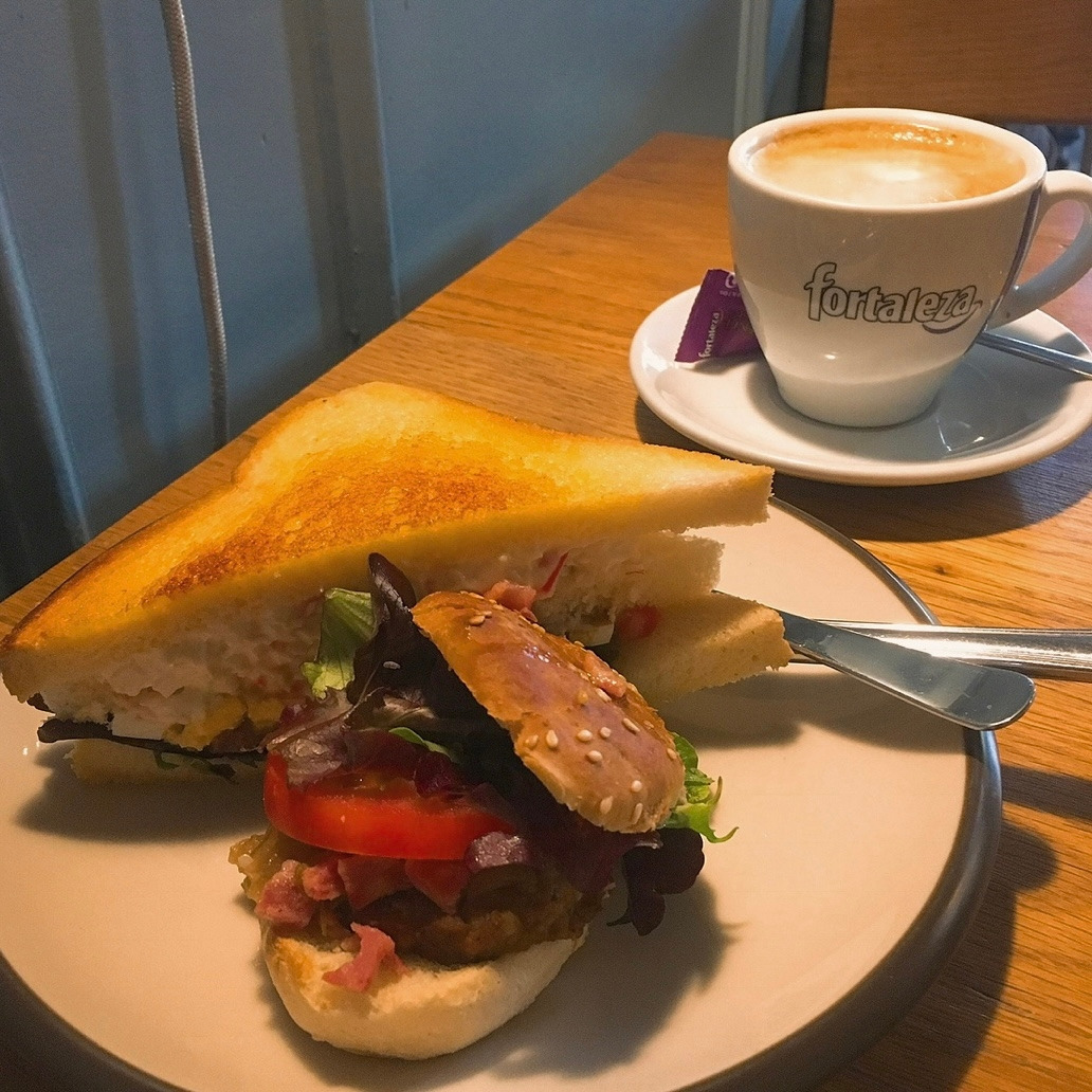 심지어 발견한 카페는 아주 따뜻했고, 식빵으로 만든 샌드위치와 미니 버거를 팔고 있었다. 이걸 발견했을 때의 감동이란. 까미노 프랑스길에 있는 바르(bar)에는 거의 보카디요(Bocadillo, 바게트 안에 계란 등을 넣어 만든 스페인식 샌드위치)와 또르띠야(Tortilla, 감자나 시금치 등이 들어간 오믈렛)가 전부다. 처음에는 맛있게 먹었지만 점점 바게트 빵과 계란 오믈렛에 질려가고 있던 있었다. 이제는 좀 입천장이 까지는 딱딱한 바게트 말고 말랑말랑한 식빵 같은 빵으로 만든 무언가가 먹고 싶었다. 계란만 들어있는 샌드위치 말고 다채롭고 자극적인 속재료도 그리웠다. 그런데 이렇게 아침으로 마주하다니. 비록 비는 오지만 오랜만의 호사에 입이 즐거웠다.