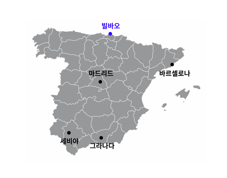 평소에는 그렇게 뜨기 싫은 눈이 오늘은 번뜩 떠지는, 오늘은 합법적으로 노는 날. 드디어 그렇게도 바라던 빌바오에 간다. 빌바오(Bilbao)는 스페인 북쪽에 있는 곳으로 예전에는 공업 도시로, 지금은 디자인 도시로 유명하다. 세계적으로 유명한 구겐하임 미술관과 빌바오 미술관 등이 자리하고 있기 때문이다.