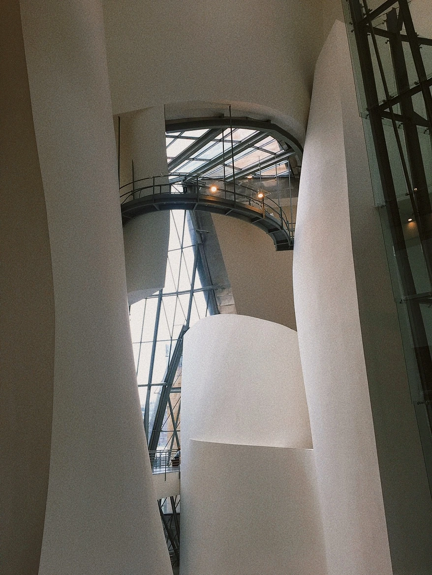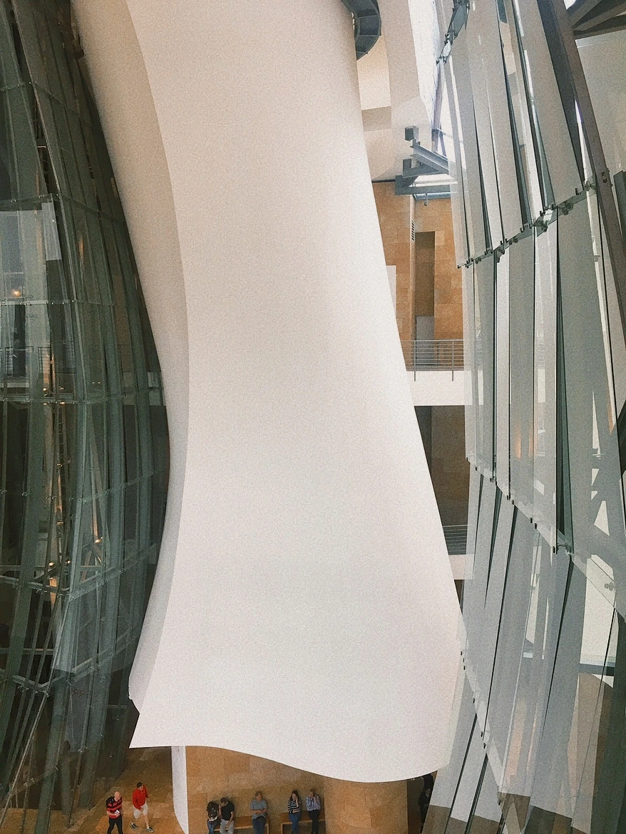 구겐하임 미술관은 생각보다 더 위용이 있는 곳이었는데, 미술관 안으로 들어가니 그 진가를 훨씬 더 잘 느낄 수 있었다. 모든 창이 유리로 되어 있어 미술관 밖 풍경이 훤히 들여다 보였고 구조적인 디자인으로 채워져 있었다.