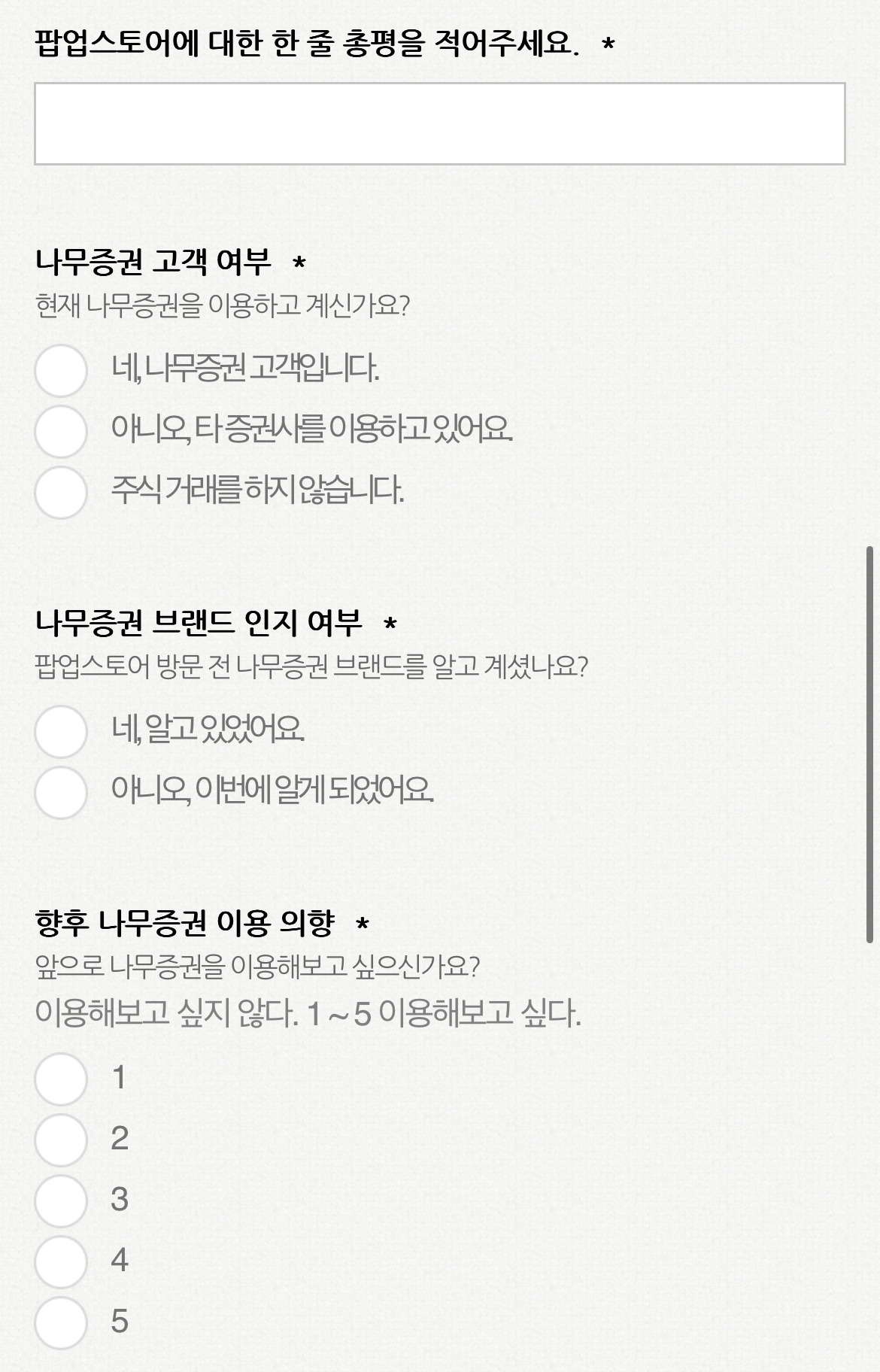 마케터 입장에서는 이 점이 나무증권 팝업에서 가장 인상 깊었던 점이었다. 마케터에게 브랜드(서비스)를 알리면서 고객 경험도 챙기기란 여간 어려운 일이 아니다. 고객들이 당장 관심이 있는 건 내가 지금 얻을 수 있는 혜택이나 경험이지, 브랜드 설명이 아니기 때문이다. 그래서 더더욱 경험 설계를 통해 브랜드와 서비스의 인지도를 높이려고 한 나무증권이 대단하다고 생각했다.