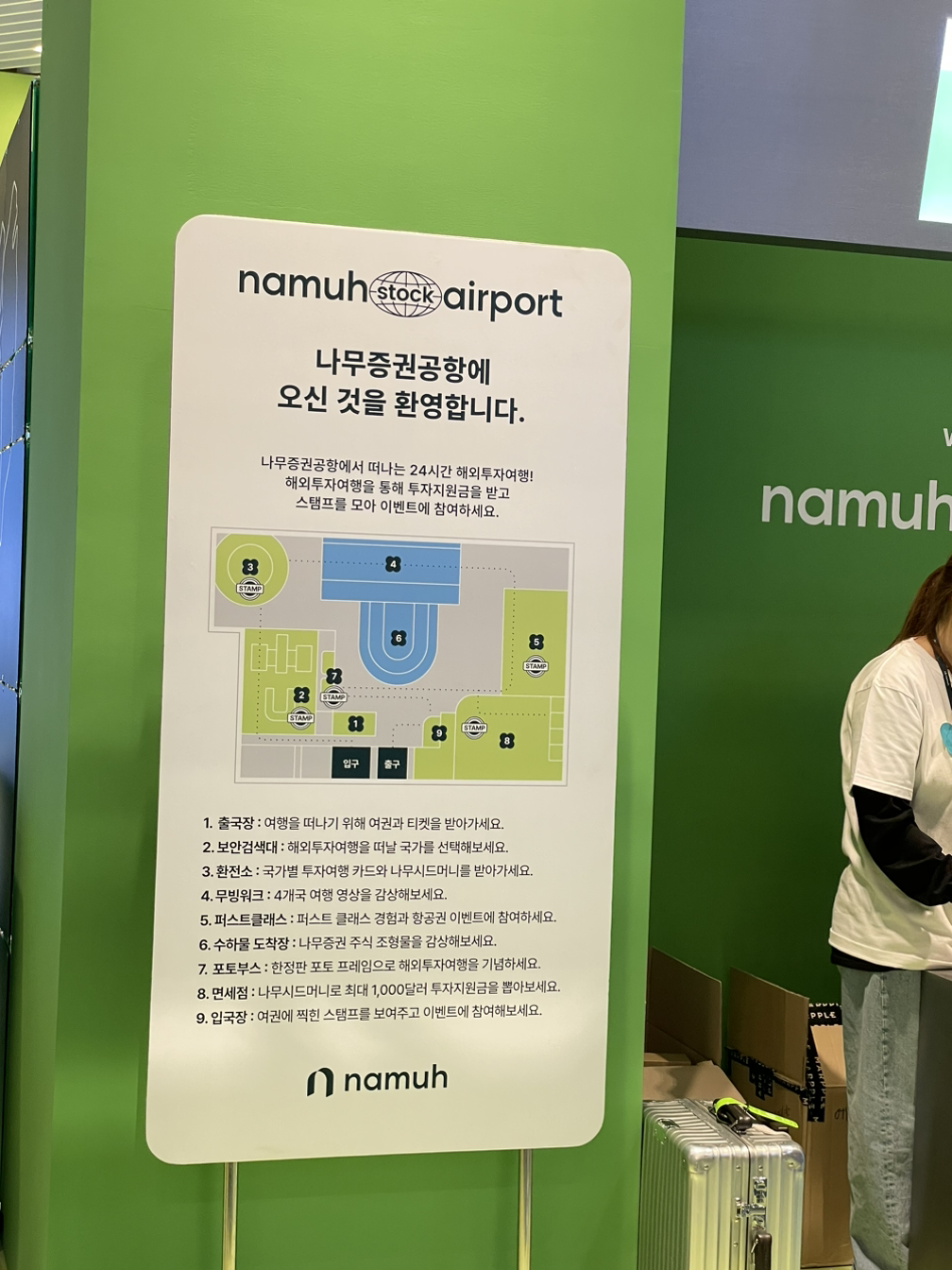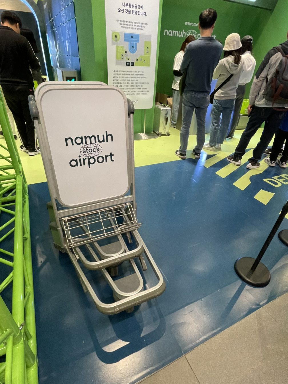컨셉에 진심이고 디테일이 훌륭하다. 나무증권 팝업은 '나무 증권 공항'이라는 타이틀로 진행되는데 정말 소품 하나까지 디테일하게 공항의 모습을 담았다. 군데군데 세워져 있는 캐리어들, 캐리어 카트, 입국장 & 출국장 컨셉, 보딩 패스, 스탬프, 짐 검사하는 곳, 무빙워크까지. 처음부터 끝까지 공항 느낌을 낸 게 아닌, 공항을 그대로 옮겨온 느낌이다.